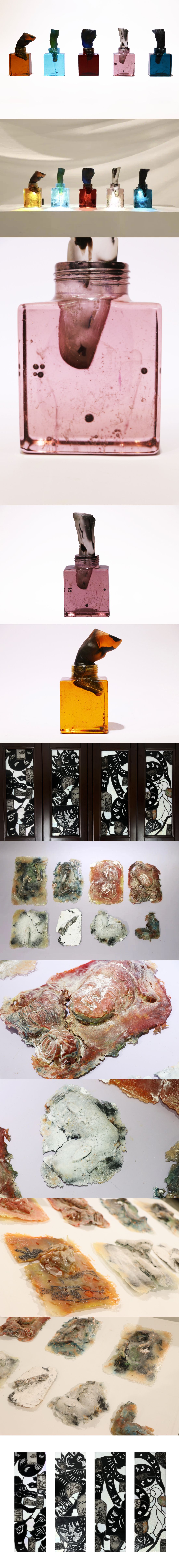 该创作中的客观载体手指部分来源于《故事中的故事》系列中用手指为村民医治百病的《吹穗人》,蕴含忆中叙事性表达,后以指甲油瓶的形式呈现,以标志元素构成整体形态。