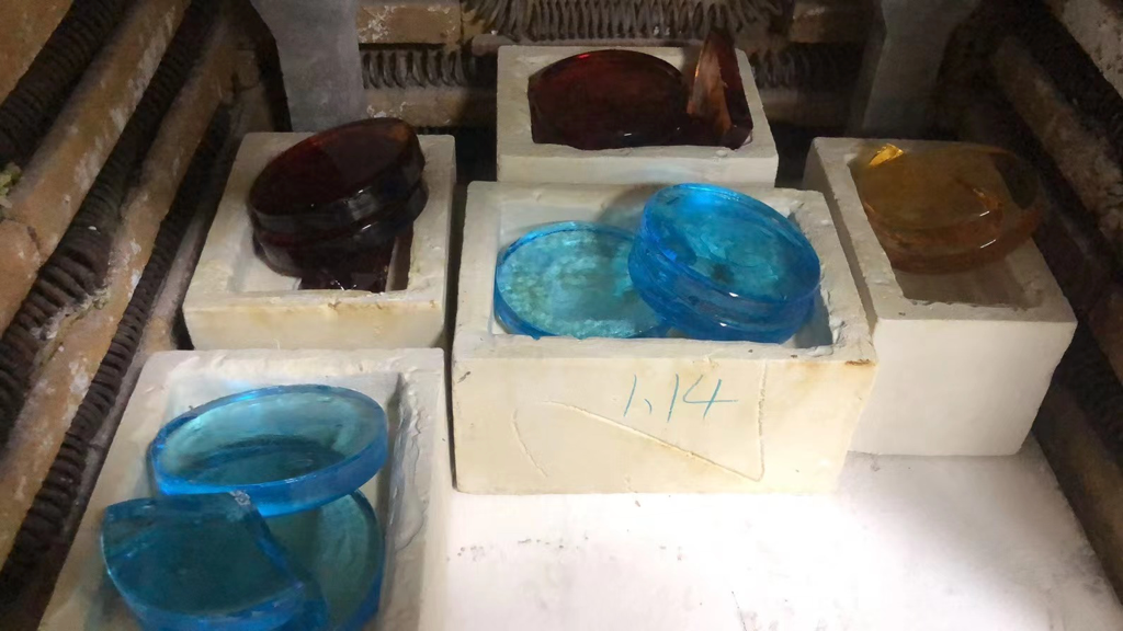 粉烧的工艺需要先熔再固,把散着的片段凝成新的呈现,由玻璃的特性讲逝去的人和故事永远的定在凝固的那一刻。
