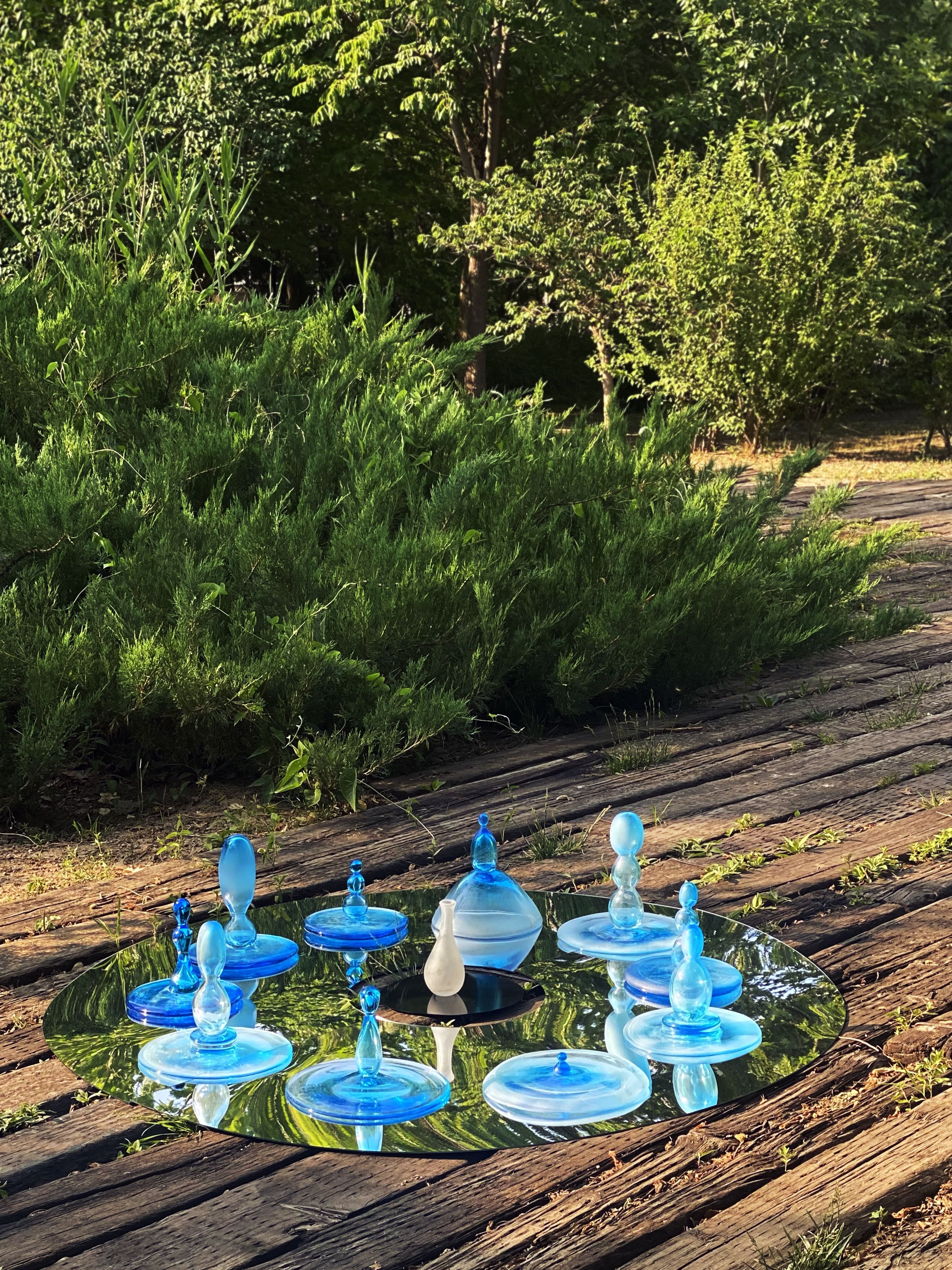 Artwork description: The "Xu" series of works takes the tear bottles and tears from the ancient Roman period as creative elements. The tear bottle is a vessel for holding tears, and tears are the carriers of emotions and memories. I chose glass as the creative medium and used tears of different shapes to express the changes in my emotions after experiencing the passing of my grandparents. At the same time, I combined mirrors to present this set of works in the form of installations. Each tear is placed on the mirror surface, like the thoughts and memories that repeatedly well up from the heart through tears in daily life. I also hope that the audience can look through these "tears" and recall their own stories and emotions, and convey the emotions and warmth in their hearts.