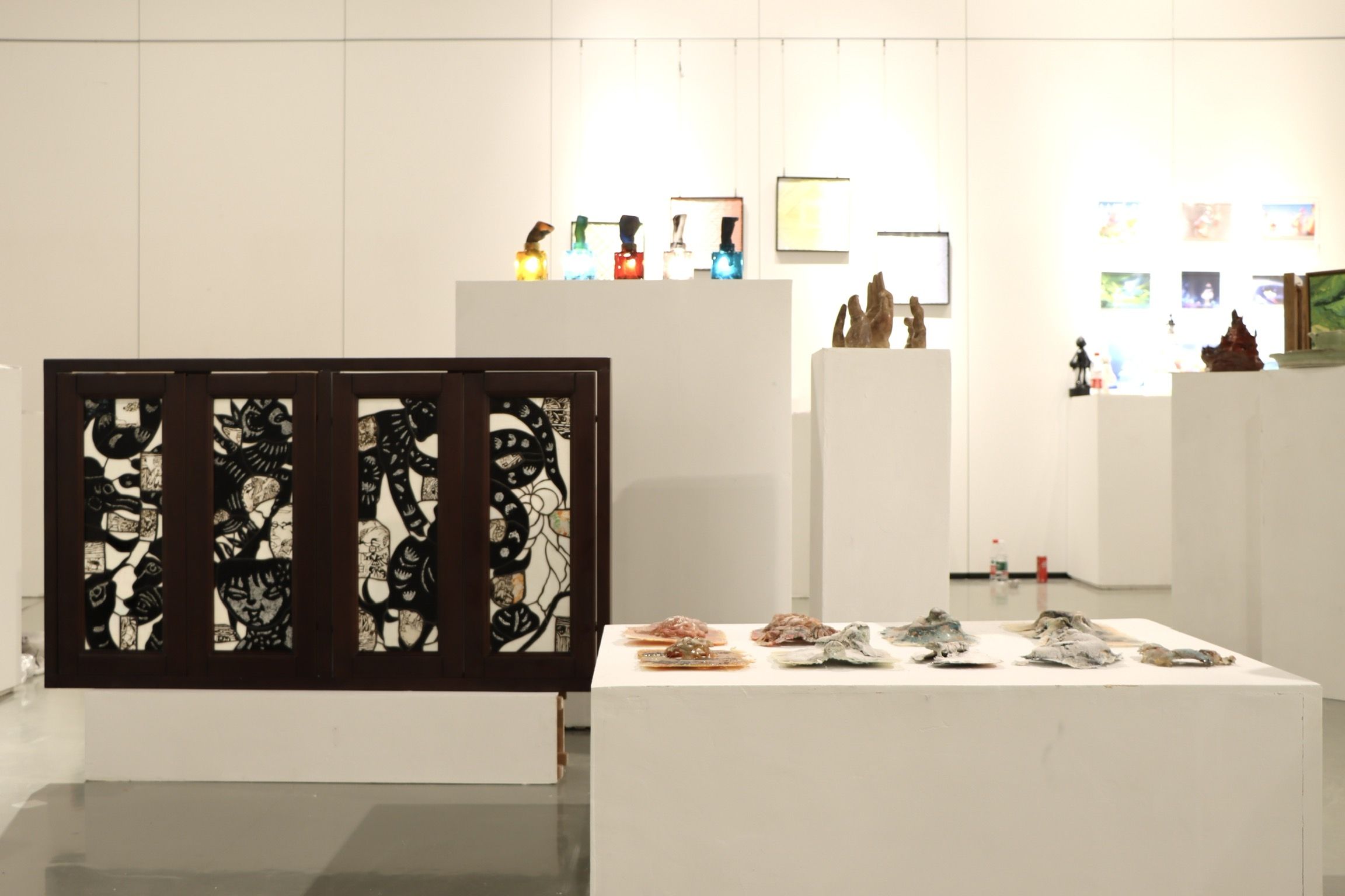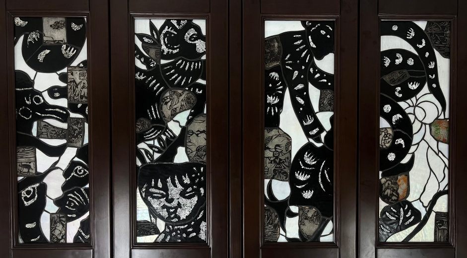 Artwork description: Presenting stories written and told by your grandfather as a child in glass, fix them for a period of time. Using paper-cut elements, the emphasis on declination and the focus on collage between glass mosaic surfaces collide, with the intention of retrieving elements from different time and space that already exist to piece together the subjective and objective story. The glass block gives new life to the cut-out space. The idea is to recreate the story and extend the association. The original story is lost to memory, and the storyteller is gone. There is only a vague idea of the story, but how the story develops depends on the association of the current creator. Any angle can continue.