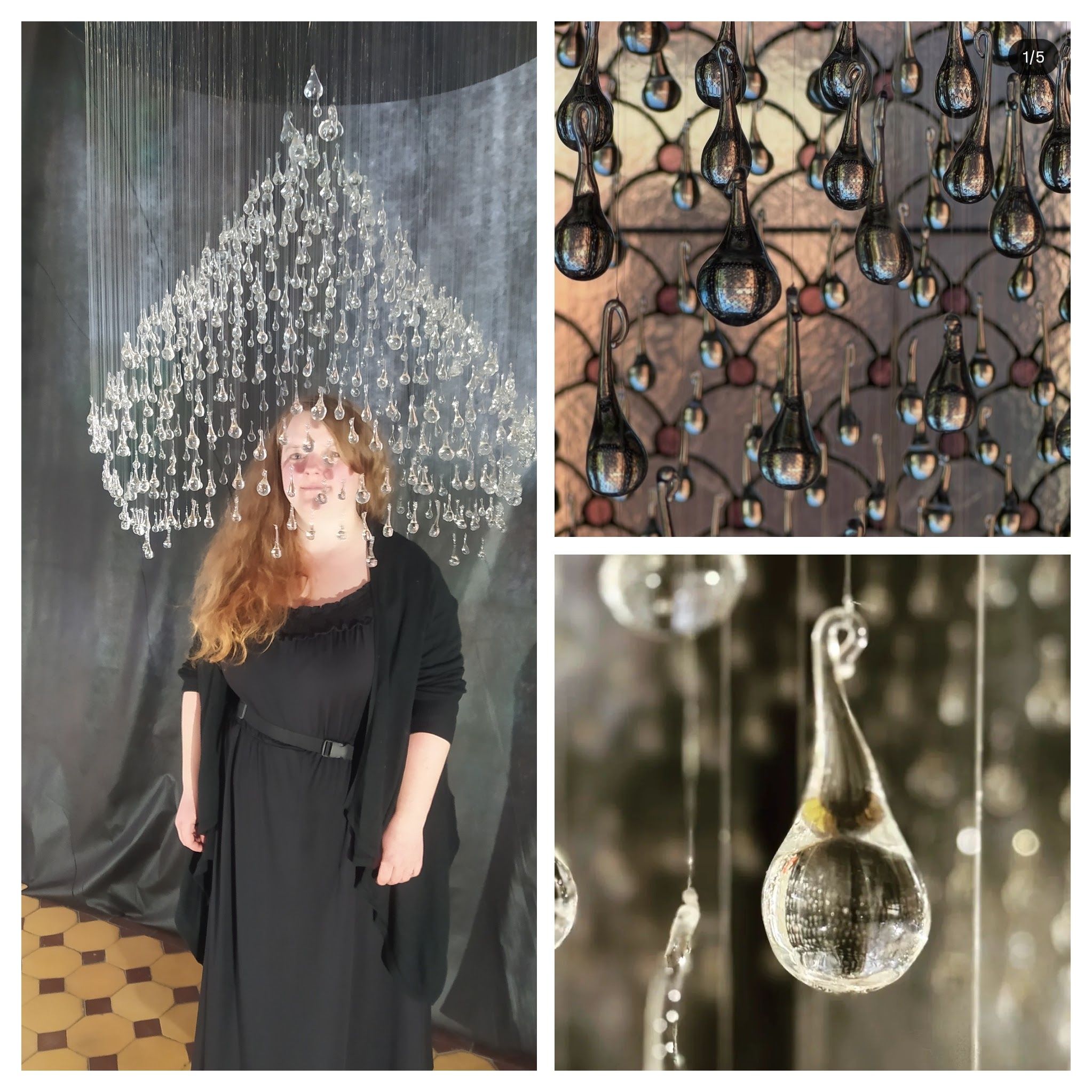 diary—by forming each tear as a dedication to specific events. Goal was to make interactional object where you can go in the middle, esxpierenc sound, space and your own feelings, but thereby creating a space for meditation, contemplation, and ritual for emotional healing. But due to first exhibitions expierence with children and not so careful visitors, i realised that i would need different kind of construction for everyone to interact and also keep artwork safe. But it doesnt loose its magic of miracle and moovement, chance to contemplate life while looking from outside.