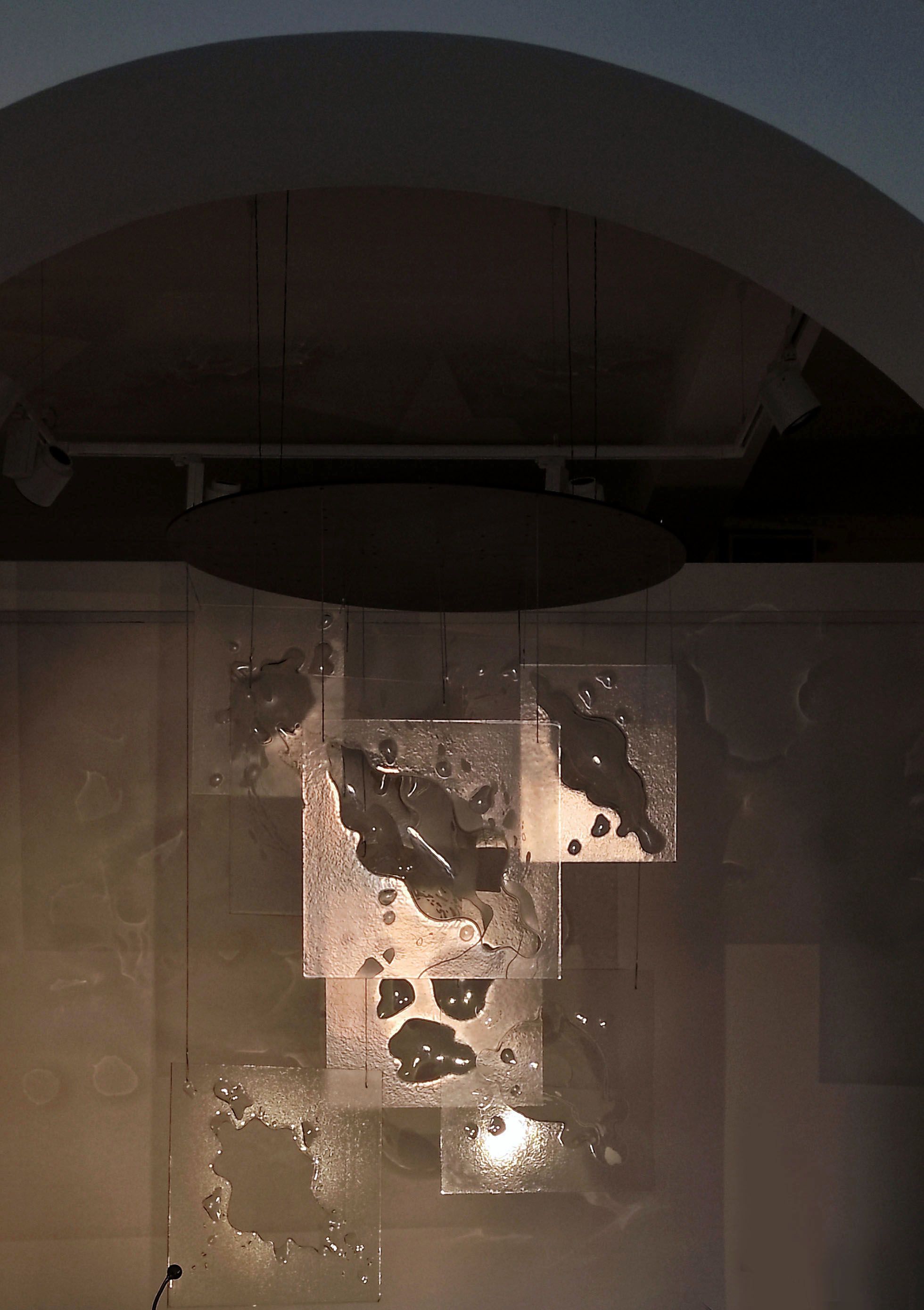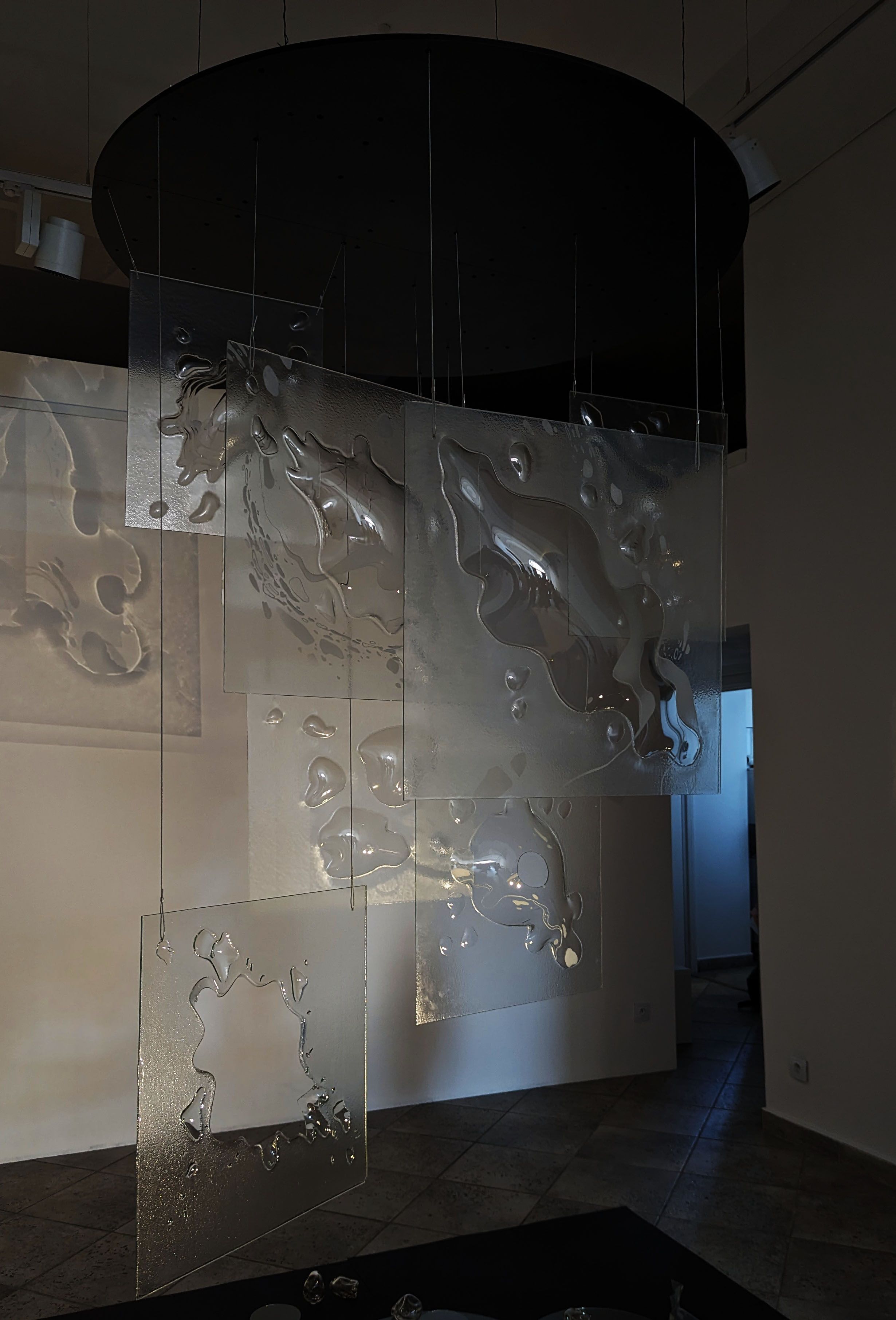 Artwork description: "Between the Lines" is a series of metaphorical glass images. It is a representation of the death of the star and its shattering into small pieces, clothed in a metaphor for the disintegration of the human psyche. Humans, like the stars under the influence of negative factors, can choose between two paths. One of them leads to nothingness, and the other to transformation into something beautiful, noble with a deeper view of reality. Reflecting on loss and melancholy, I address the issue of feelings closely accompanying people throughout history. Anyone who has experienced them knows how much they affect the whole of our existence and the perception of the world. The multi-element glass installation is, in a way, a never-ending story, an attempt to talk about emotions in a non-literal way, using glass matter as a medium. It illustrates a story that certain processes and the difficult experiences or emotions associated with them are an inseparable part of this world, and one has to got through them in order to look a little further beyond what we see. "Between the Lines" is, in fact, a work about feelings that accompanied me in my most difficult and painful moments of my existence.