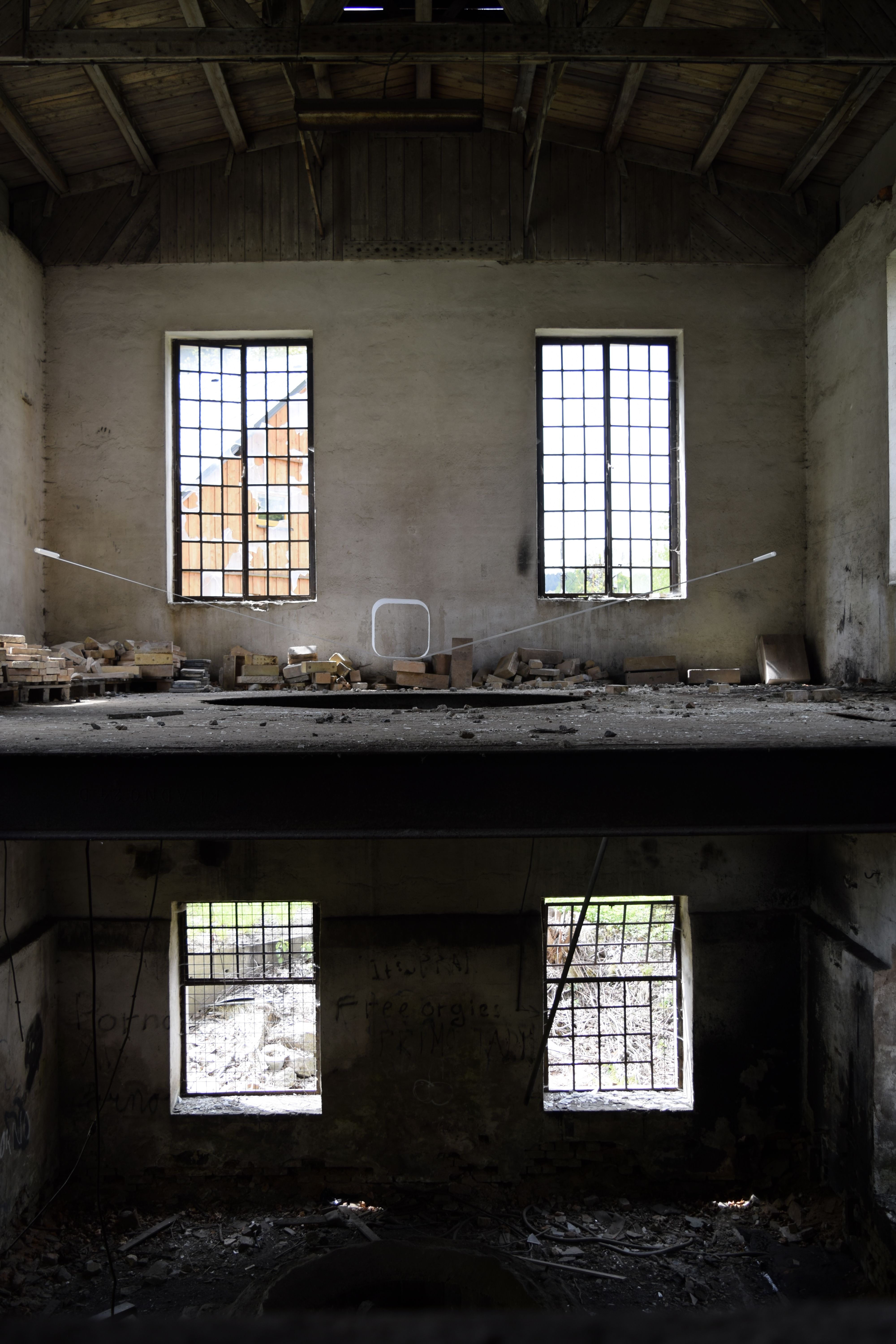 Each space offered its own specific conditions that allowed for a unique site-specific installation of the work. The old Generator House once served for producing fuel gas for glass furnaces. Today, the site is defined by its distinctive floor and windows. The floor contains geometric openings—squares and circles—which, in dialogue with the installation, created a tense and evocative atmosphere.