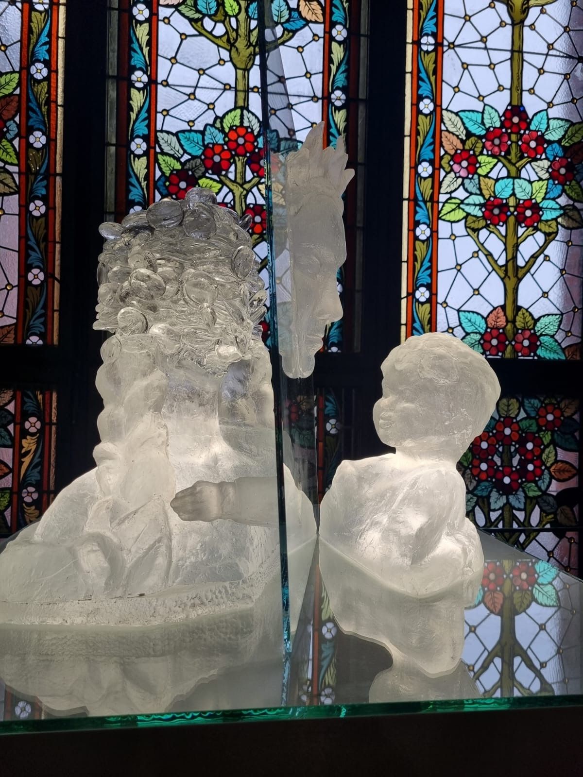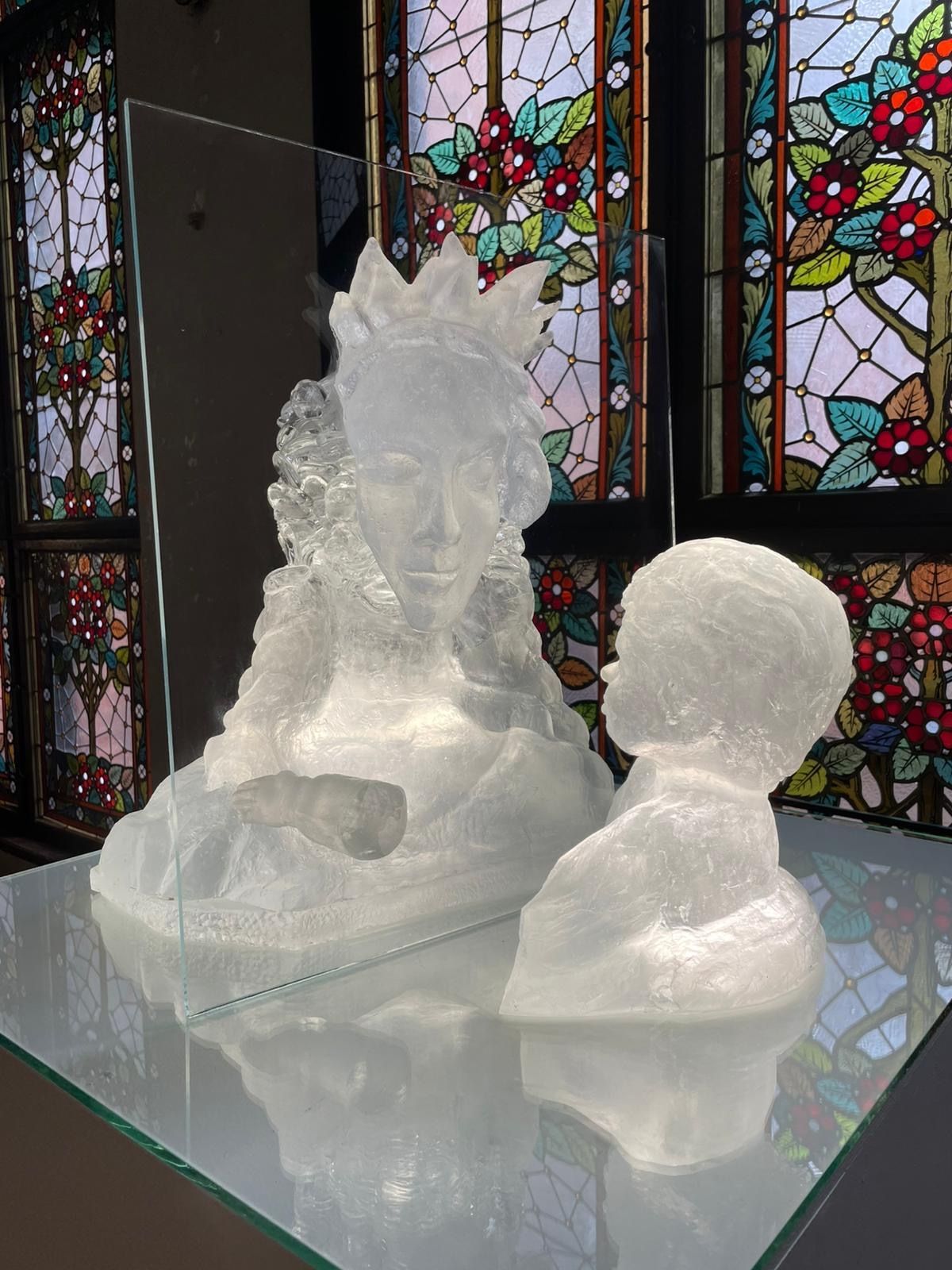 The sun is a symbol of life, eternal motion, heat. Sunlight symbolizes inspiration and spiritual observation. It protects the family, brings God's blessing, is the voice of the harmony of the events of the universe and the highest aesthetic values. At the center of the sun sign is the soul of man, his higher self. The center also symbolizes the subtle or energy of thoughts, the counsel of God. The artwork DAUGHTER of the Sun is a set of glass sculptures. The daughter of the sun is a mythological creature associated with the sun in the form of a young woman. In a work of art, the daughter of the Sun holds her child in her arms. The author talks about the identity of a woman-mother, about faith in herself, about her belonging and being, and reflects the ancient Baltic view that a child is happiness.