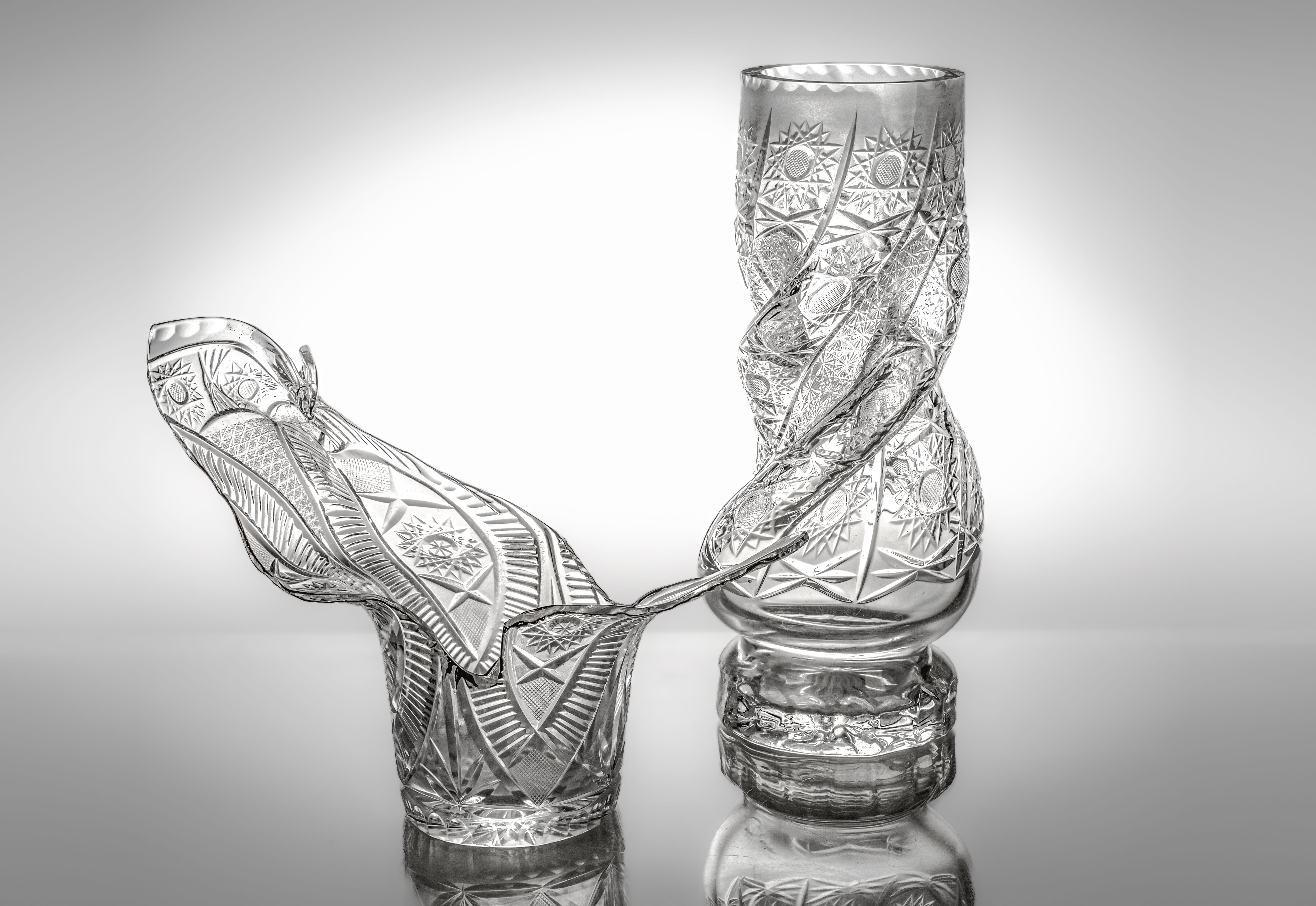 Physically, the project consists of a set of over 10 "reworked" crystal vases. Each vase undergoes deliberate deformation, which is then meticulously recreated into a new creature. This composition of the "new form" created from the old allows me to construct a narrative that speaks to the changes that have occurred and continue to shape our social life.