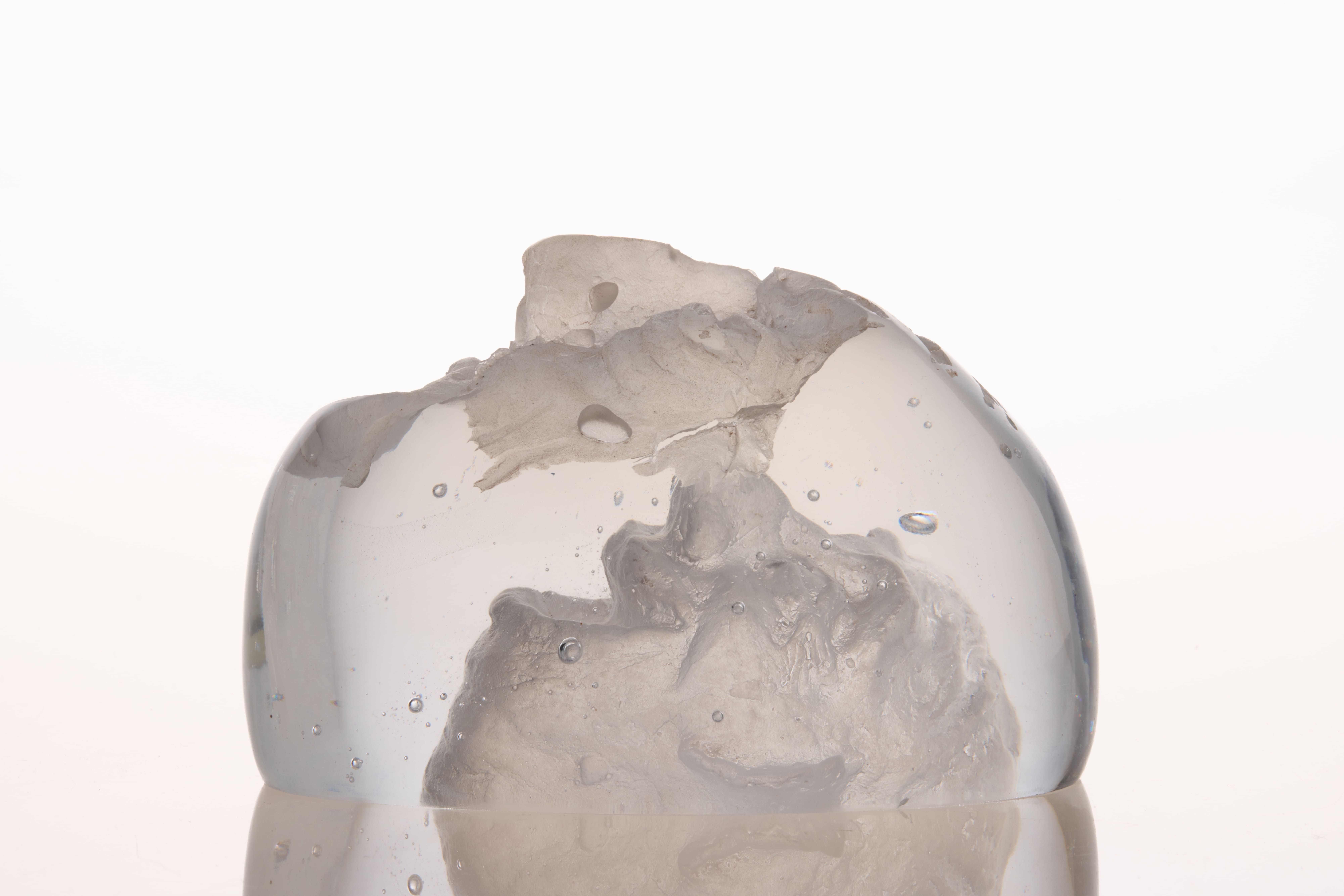 Artwork description: With my piece, I reflect on the idea of human emotions and how we often express ourselves in ways detached from our innermost feelings. It toys with the misunderstanding of other people's emotions, and with the fact that as we form stronger relationships and grow closer to people in our lives, we might see through their mask and distinguish between how they truly feel and what they portray on the outside. In my work, I aim to recreate this human behaviour by creating a glass casting of a face. However, as the observer moves closer to it, they can see the hidden face inside: the hollow form within the portrait. While the surface frowns in disgust, the hidden face is laughing and having the time of its life.