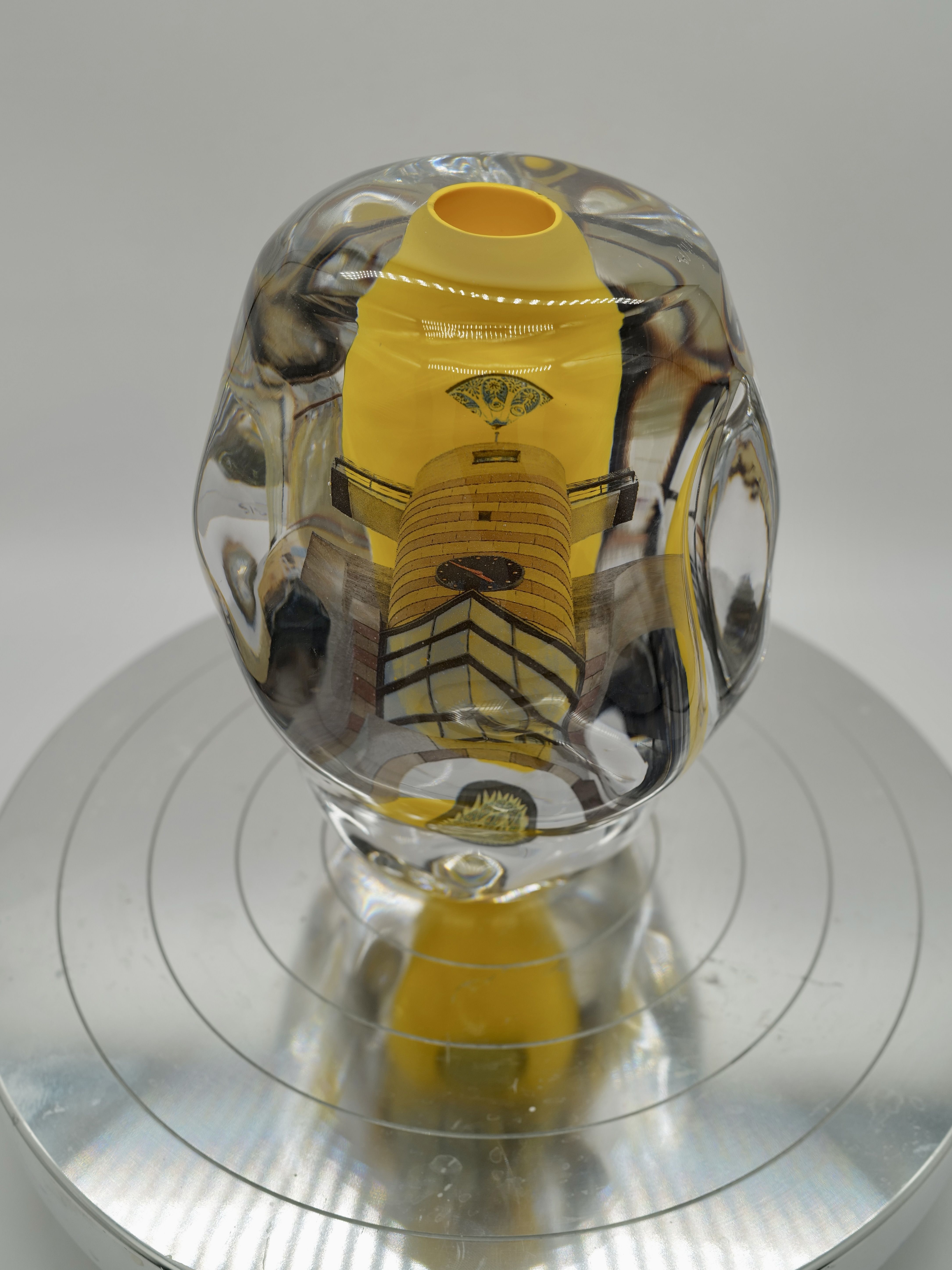 Artwork description: In this series of glass works, Ziyu continues to expand on my previous research in the transformation of two-dimensional flat images and three-dimensional presentations.