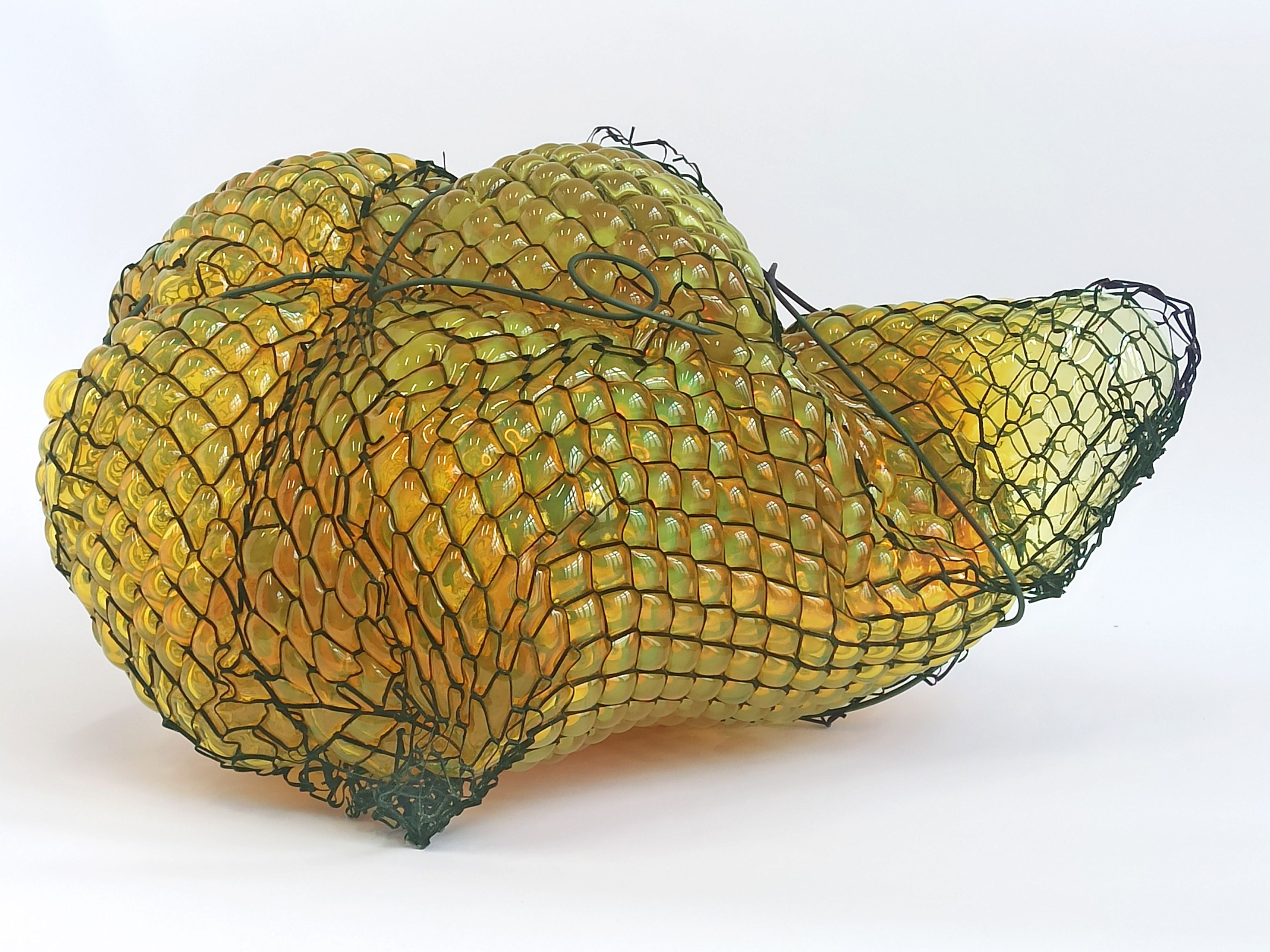 Artwork description: The starting point is the non-patriarchal masculinity, which I explore in glass. I use that material, because it is strong and fragile at the same time, and I see similarities between contemporary manhood and the medium of glass. I want to show how men are formatted by patriarchy, which in my opinion is oppressive not only towards women. The work is an attempt to embody the idea that men are molded by the system, which imposes a certain shape on their bodies and certain roles and behaviors on them. In my work the glass is intended to symbolize the male body, while the metal form is identified with restrictions on the body that leave physical marks. The construction of the form is a kind of metaphorical corset that gives expected shape to “the body" but also binds it and restrict its freedom of movement.