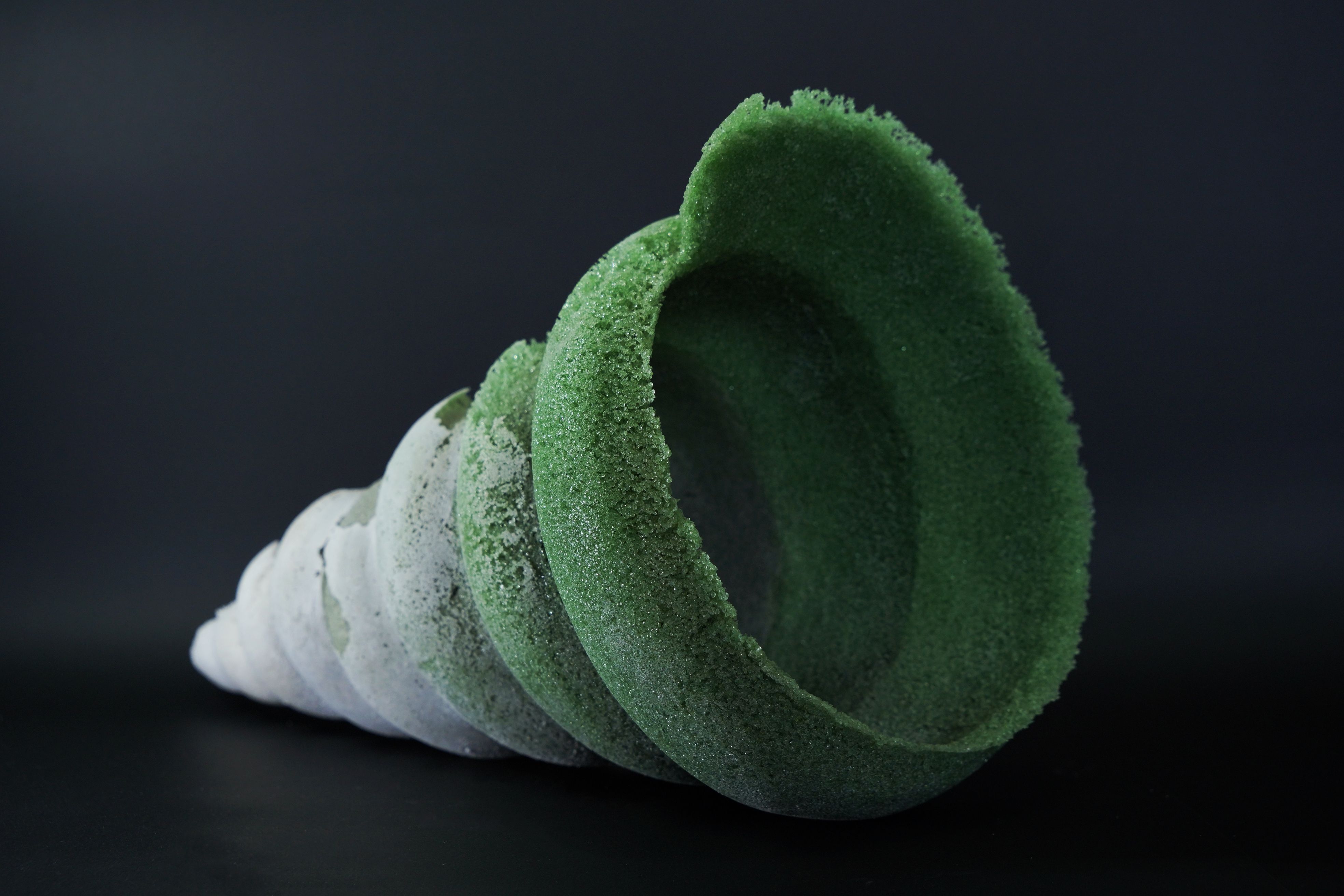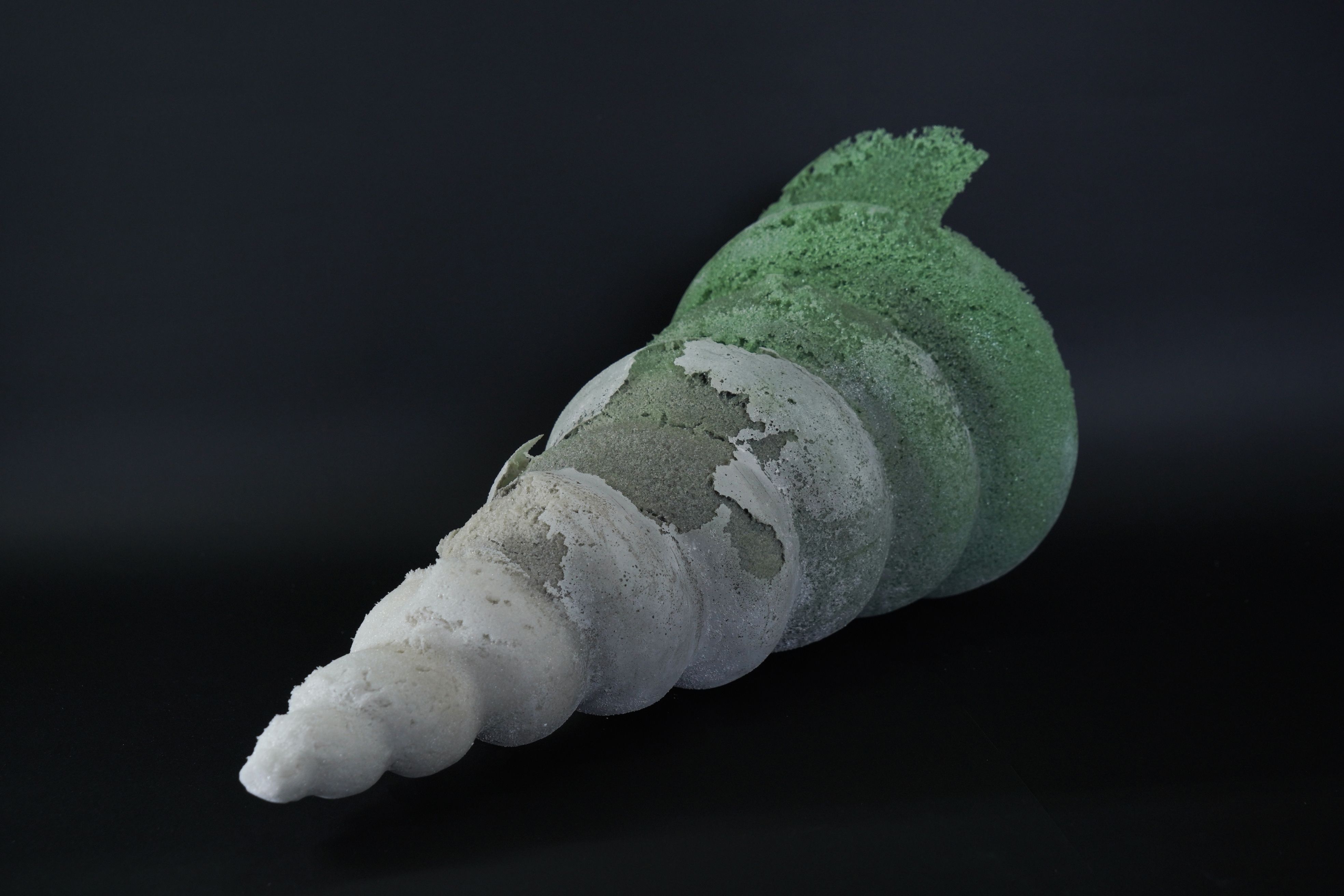 Artwork description: As the home of mollusks, sea snails are often reclaimed by other weaker animals as their "safe haven" after the original host has left. This simple recycling and reuse in nature seems to coincide with human sustainable design concepts.