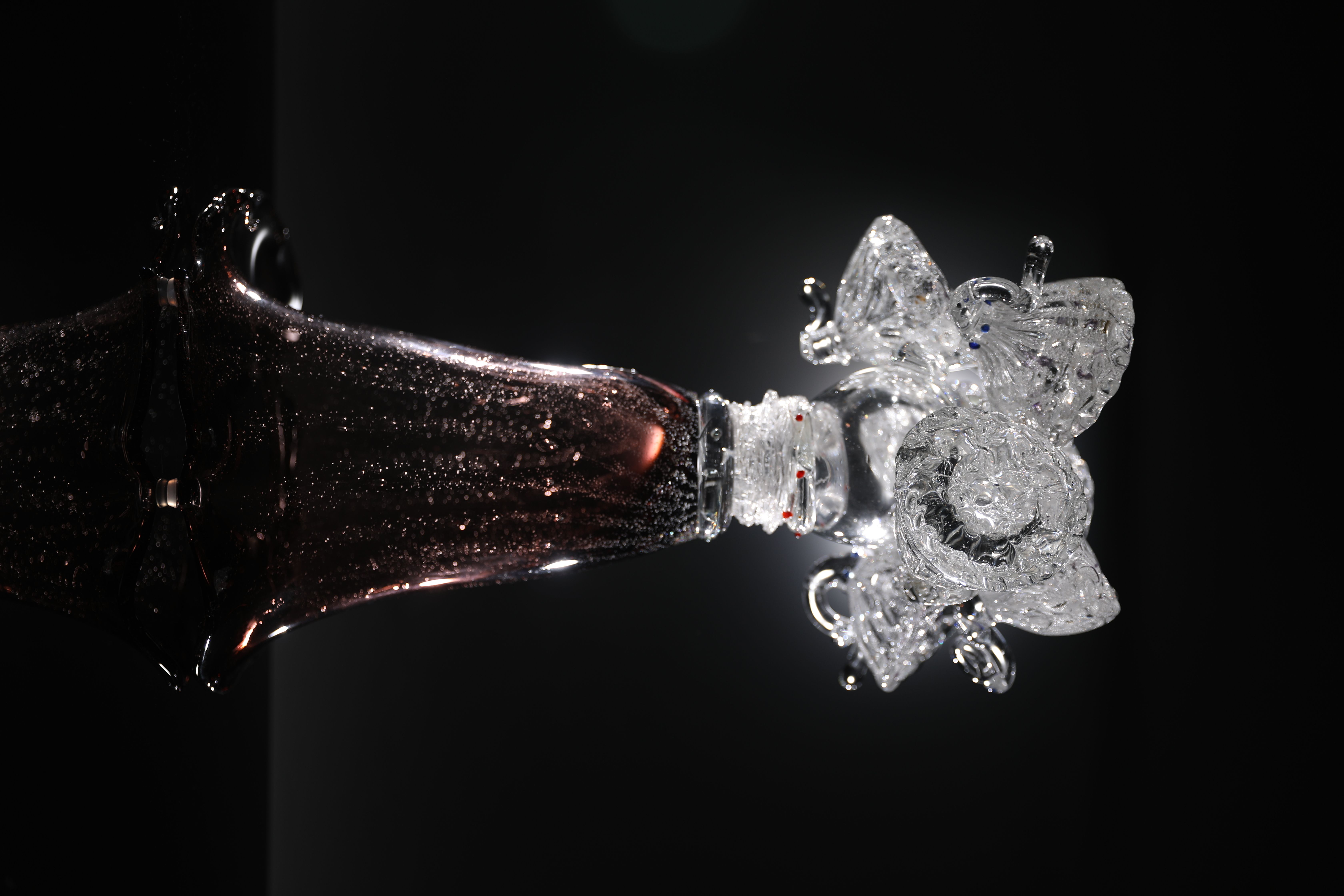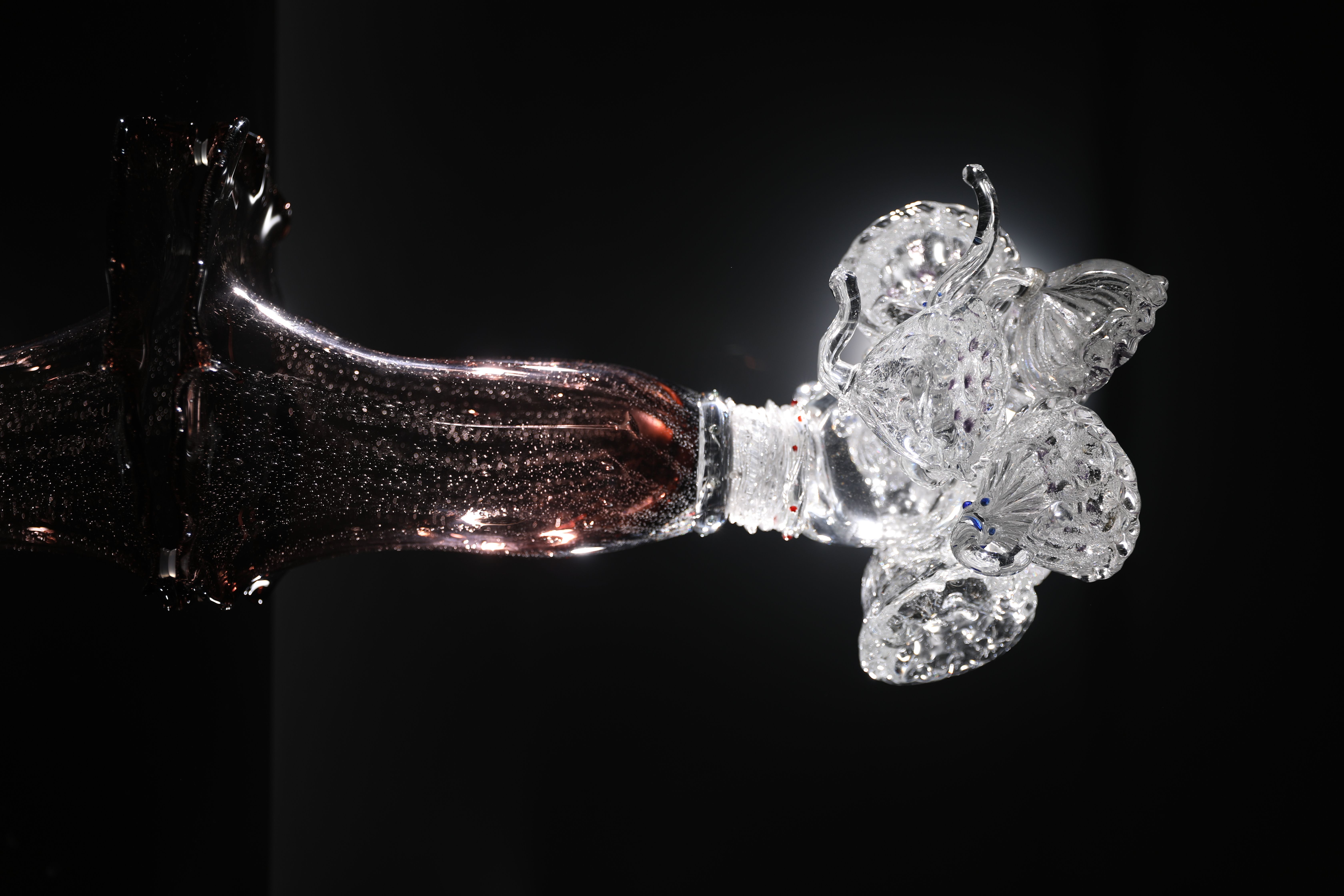 Artwork description: The inspiration for the artwork comes from natural forms and the sensation of life, using fragile glass to depict the state of natural growth and thus dissolve the fragility of the glass material, creating something fragile yet not brittle, conveying a resilient quality of life. The work selects the visual element of the lotus pod, and through the combination of utensils, it expresses a moderate and stable aesthetic style.