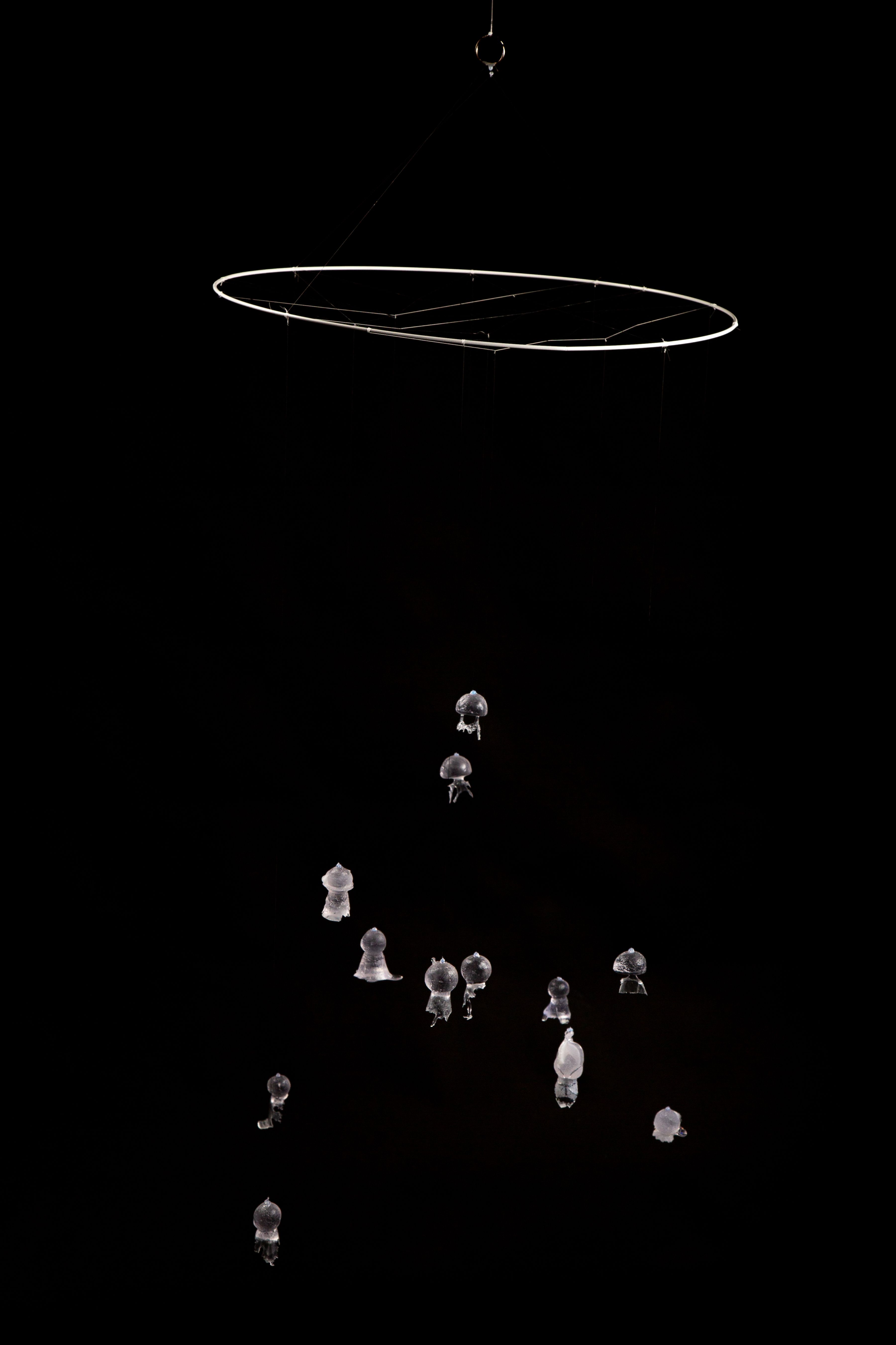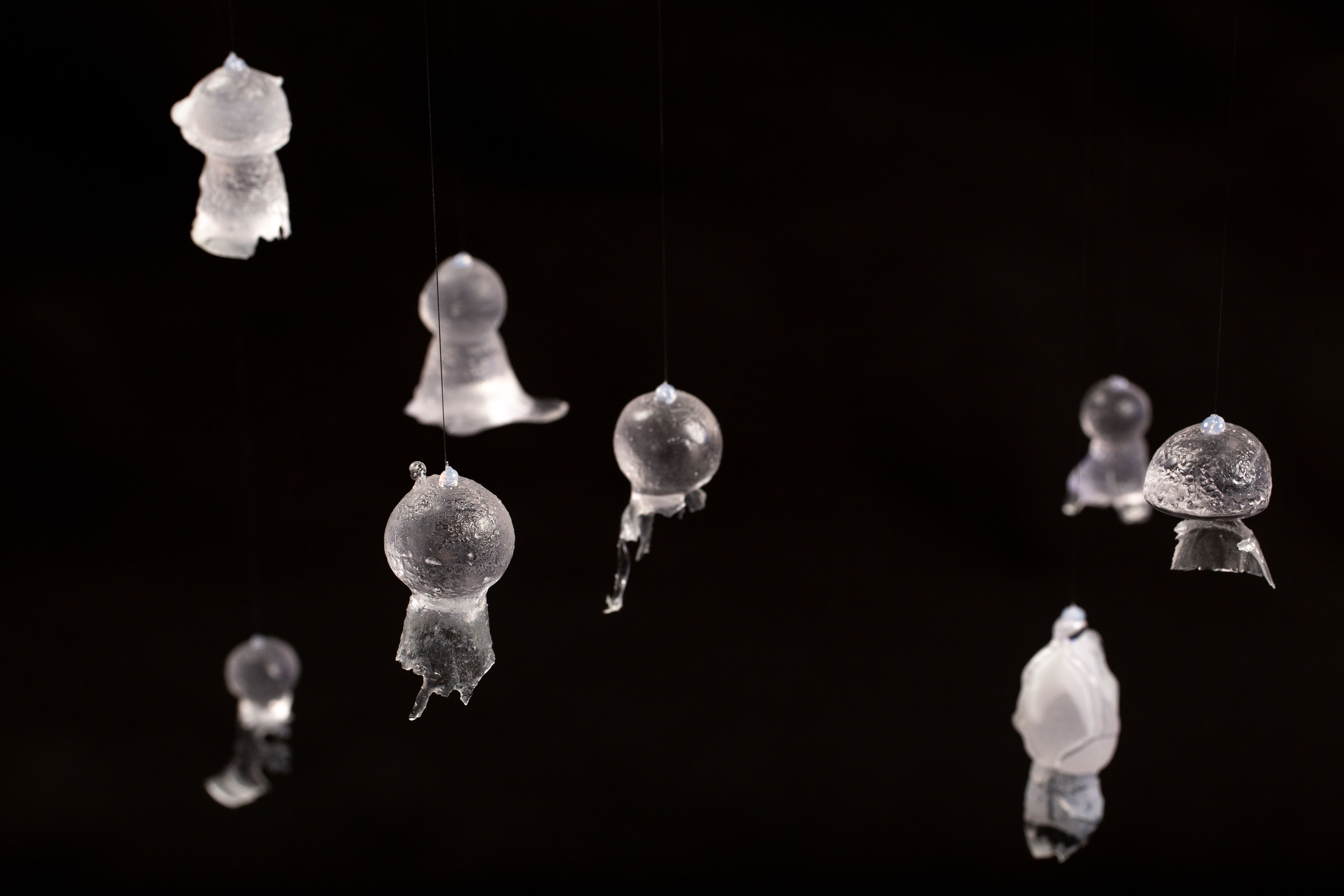 The artwork is the result of in-depth research into the creation of molds for the glass casting technique. Through my research, I was looking for a recipe for a mold that would give enough support to shape the glass into the wanted shape, but at the same time would be fragile enough that the glass would penetrate through it with its gravitational force during firing and take on a characteristic shape that is unrepeatable and unique.