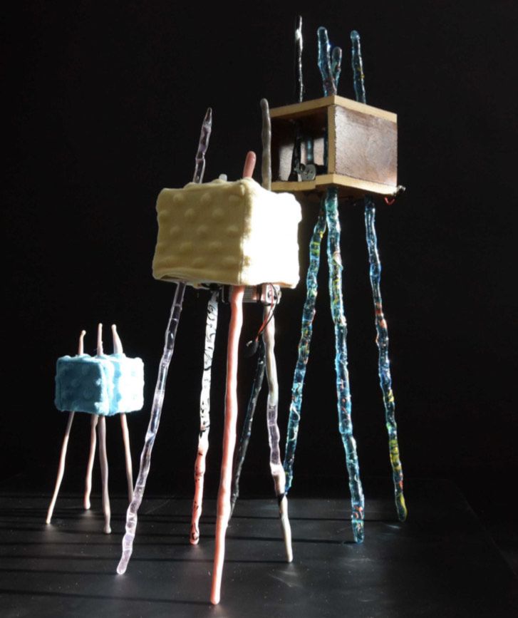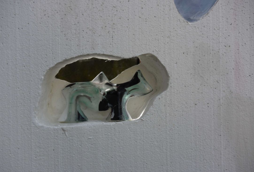 Artwork description: The aim of this bachelor thesis is to show the playfulness and joy in a world with imagination. By using a multimedia installation with glass elements, I created a sample of my fantasy world breathing life into shapes in plaster or any possible splotches met along the way. For me, it is a kind of constant game and anticipation of finding a new creature.