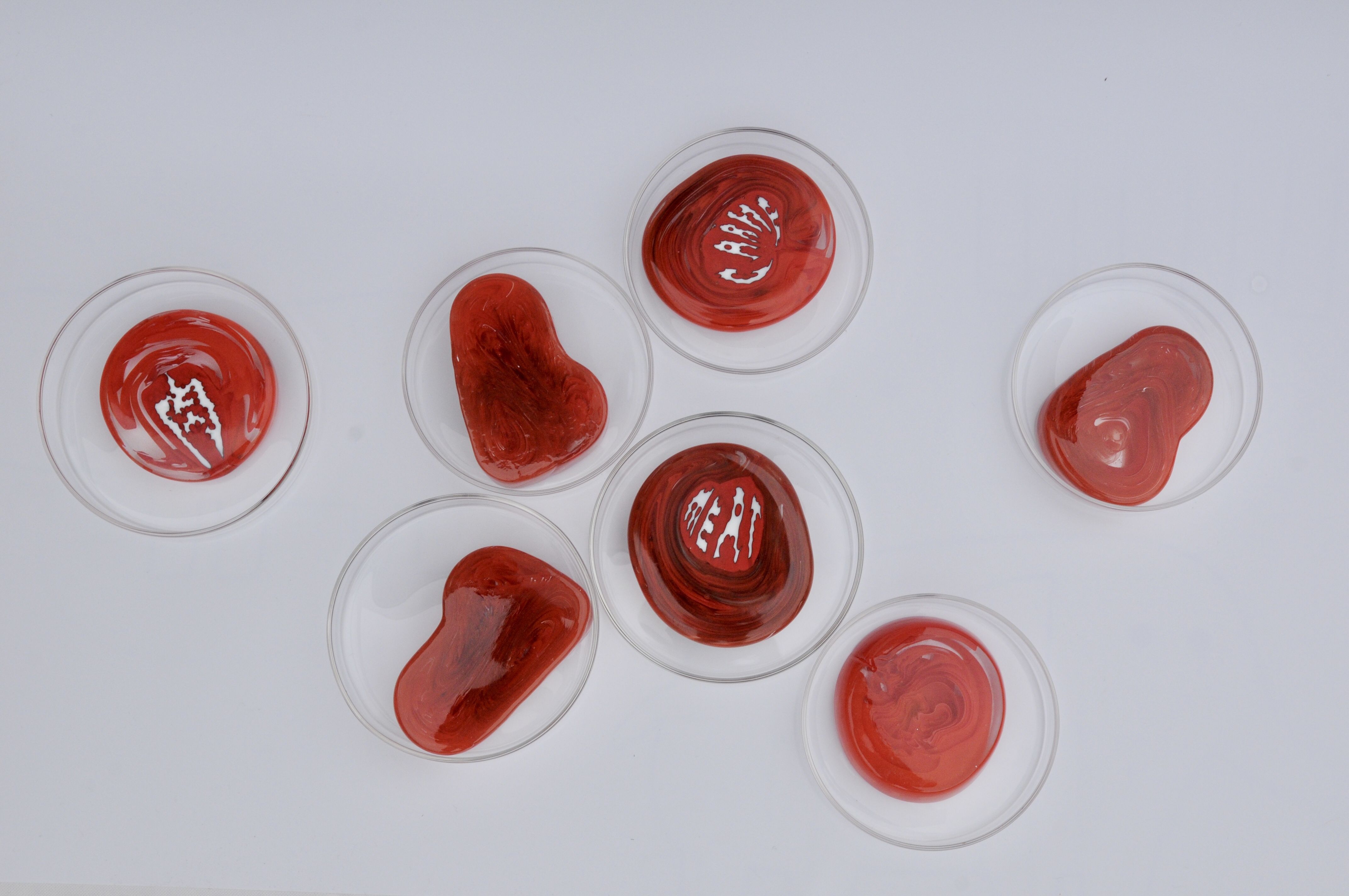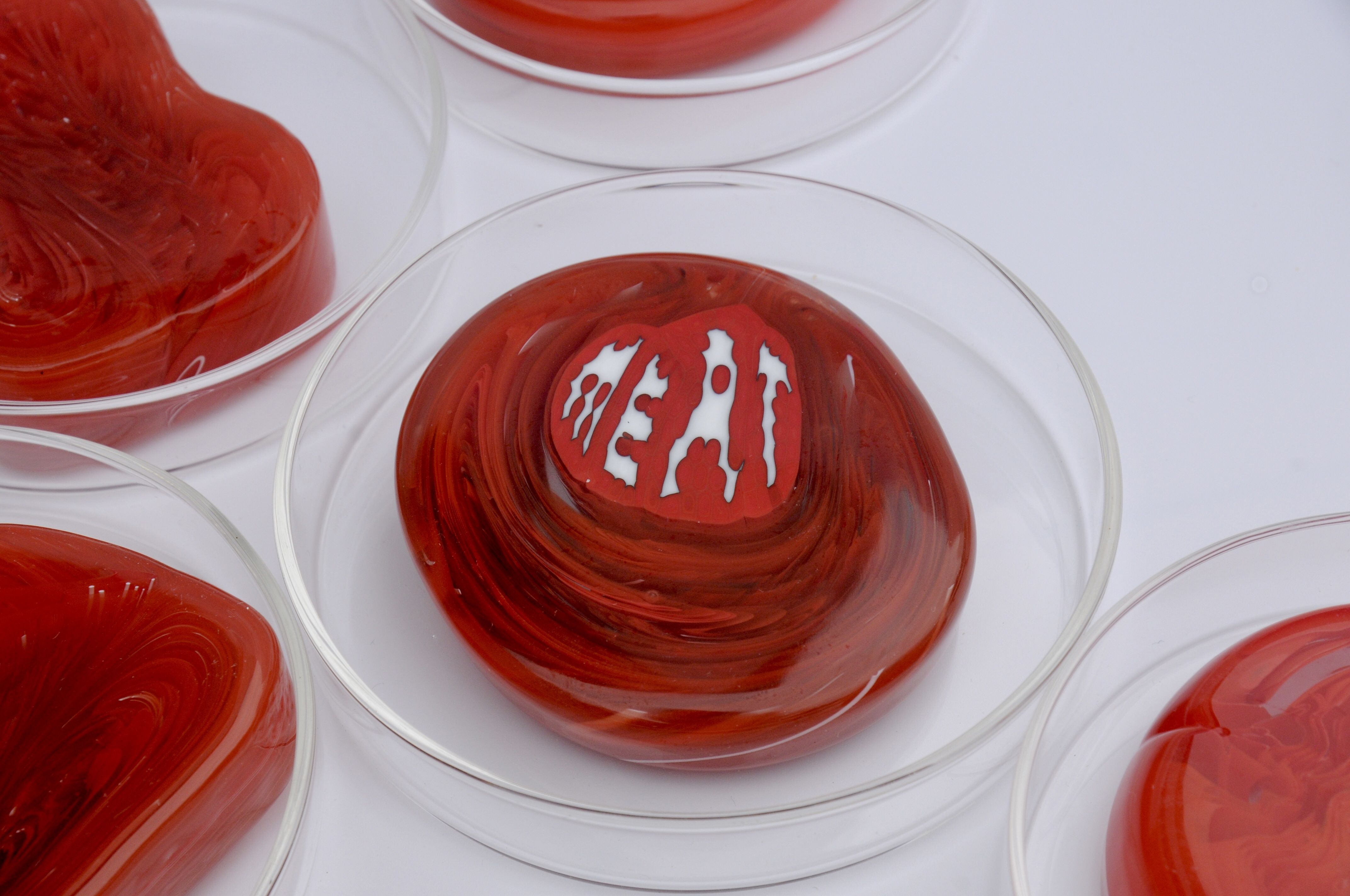 Artwork description: Glass imitates lab-grown beef, wrapping letters that represent "meat" in English, Spanish, and Chinese. This symbolizes the global discourse on artificial meat. However, not everyone recognizes these words due to spelling differences, reflecting how some struggle to accept artificial meat. Psychological misunderstanding and unfamiliarity, rather than taste, often lead to rejection. Like language comprehension, acceptance of artificial meat is influenced by preconceived notions. Overcoming these barriers requires education and awareness about the benefits and safety of artificial meat, encouraging greater understanding and openness.