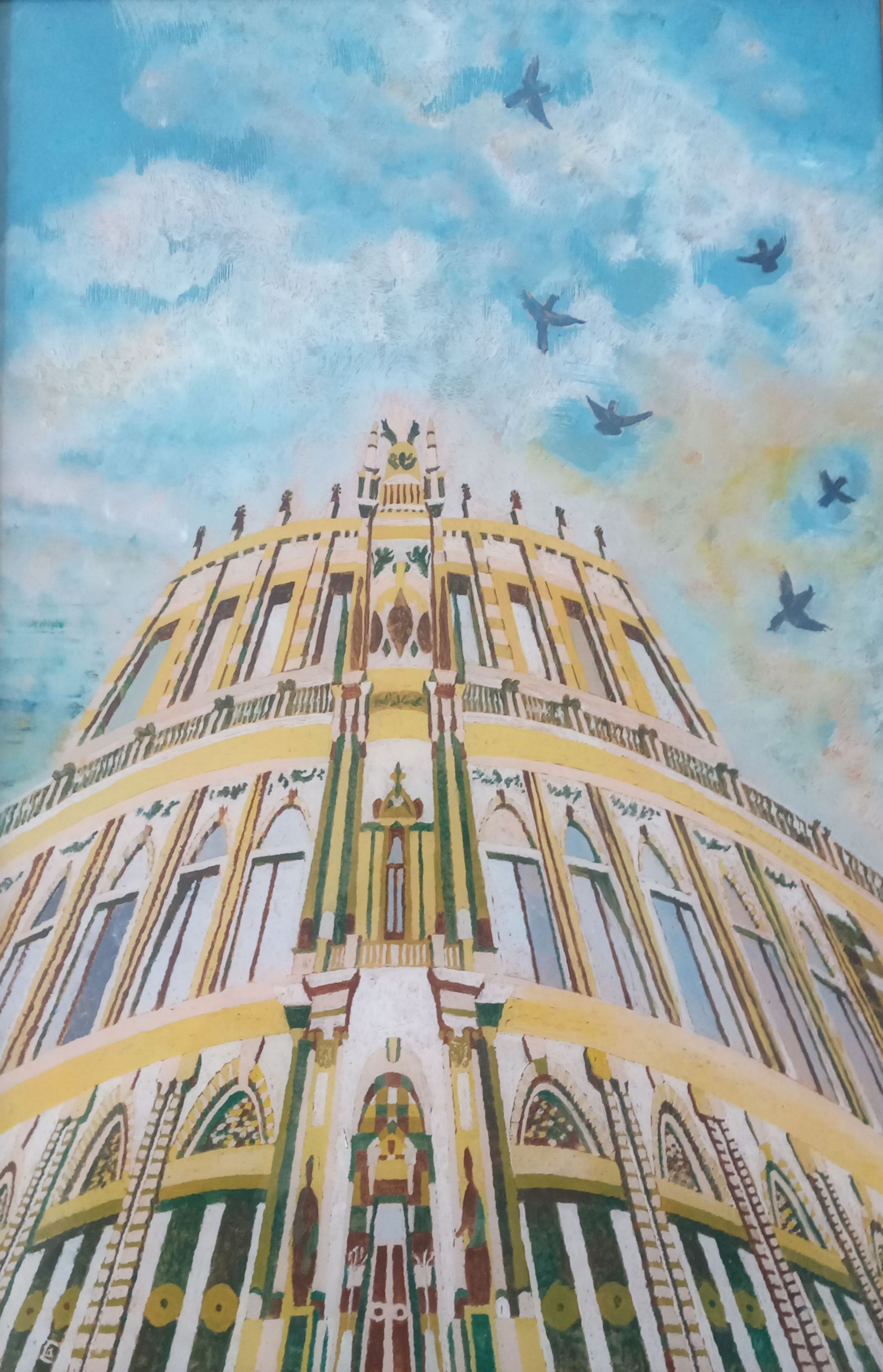 the picture is painted on a 60/40 stele, with oil paints. the picture shows a theater in the city of Dresden