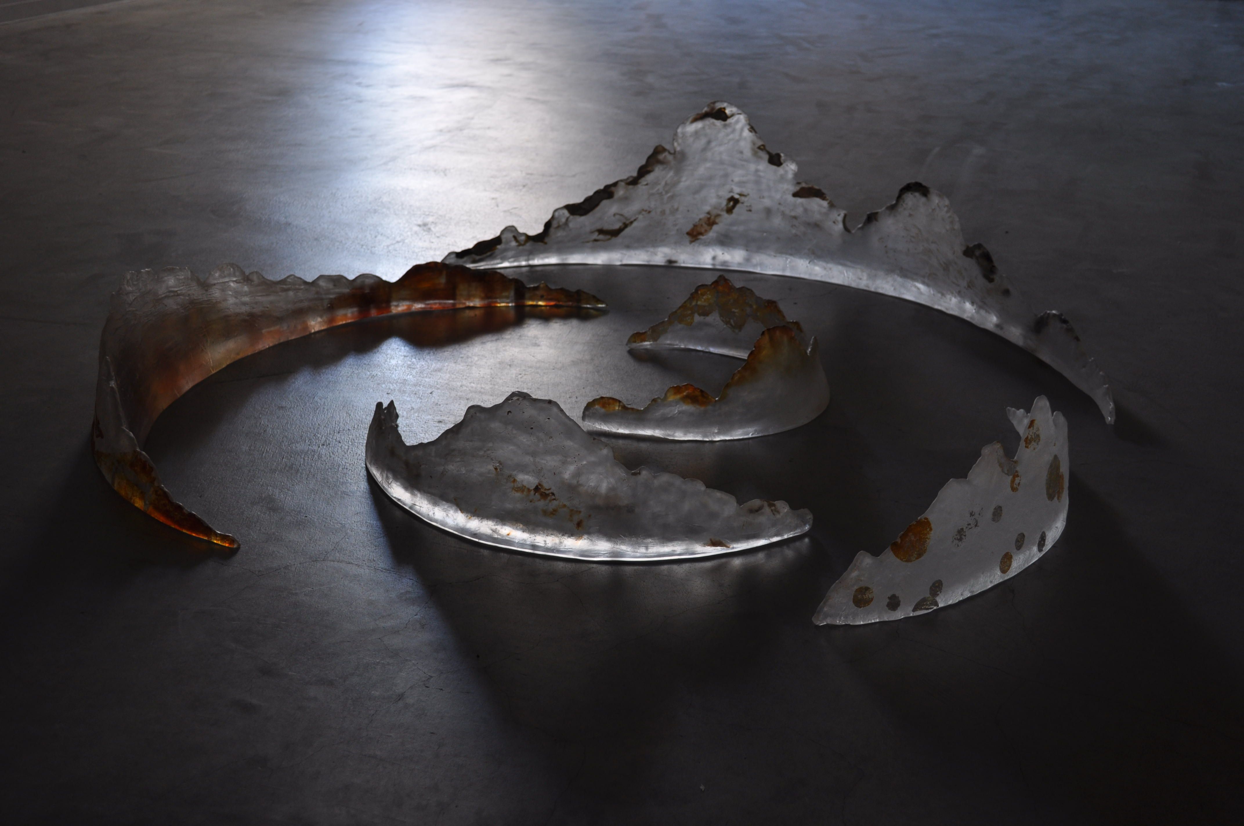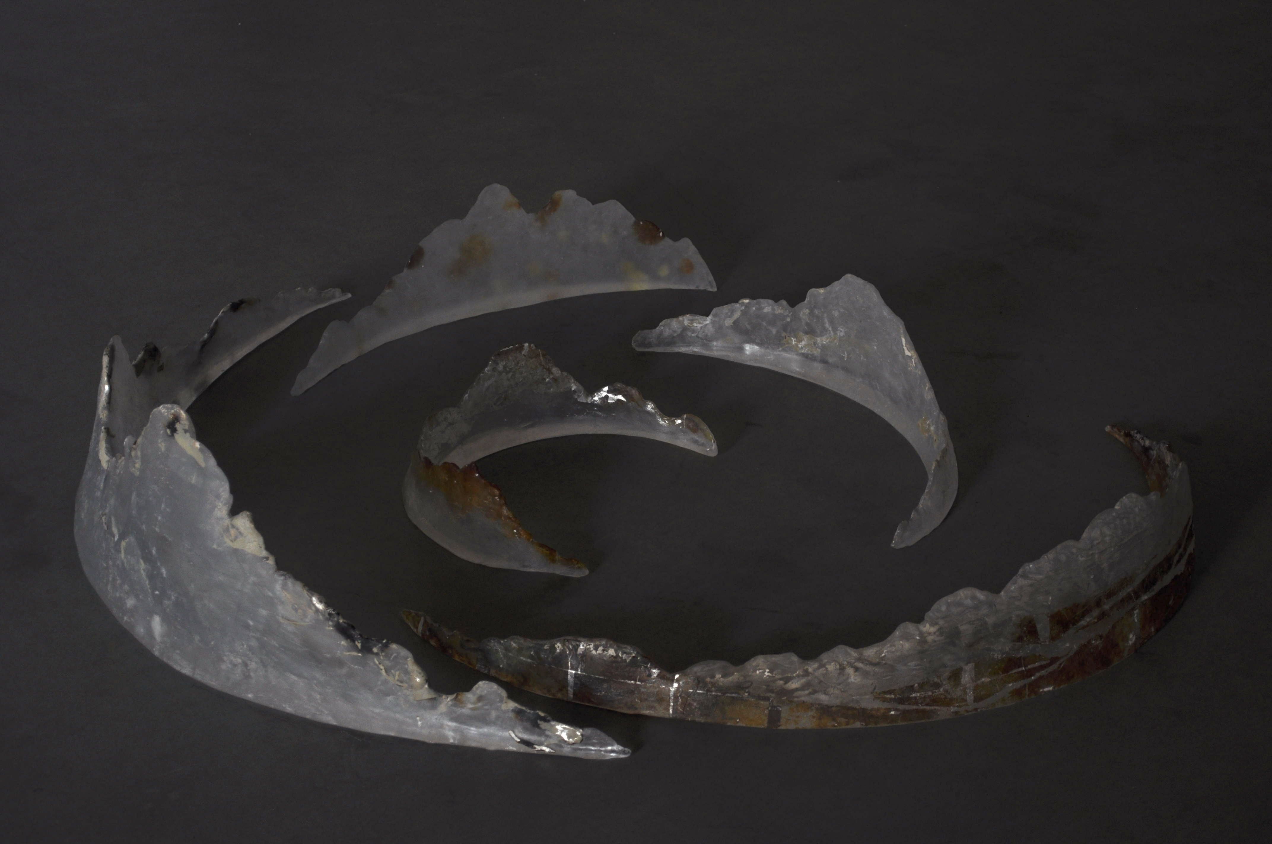 Artwork description: I grew up on a small island in the Seto Inland Sea of Japan. This work expresses the sadness and beauty of being forgotten with the motif of the island of my hometown that once flourished. Both being engraved and forgotten in people's memories are regarded as one of the cycles that exist in nature, and I recognize that it is a very beautiful thing. By baking silver into glass, it represents the time of decadence, and the glass that represents the way it is circulating accumulates light, making you realize that the beauty of nature exists in things that are going out of fashion.