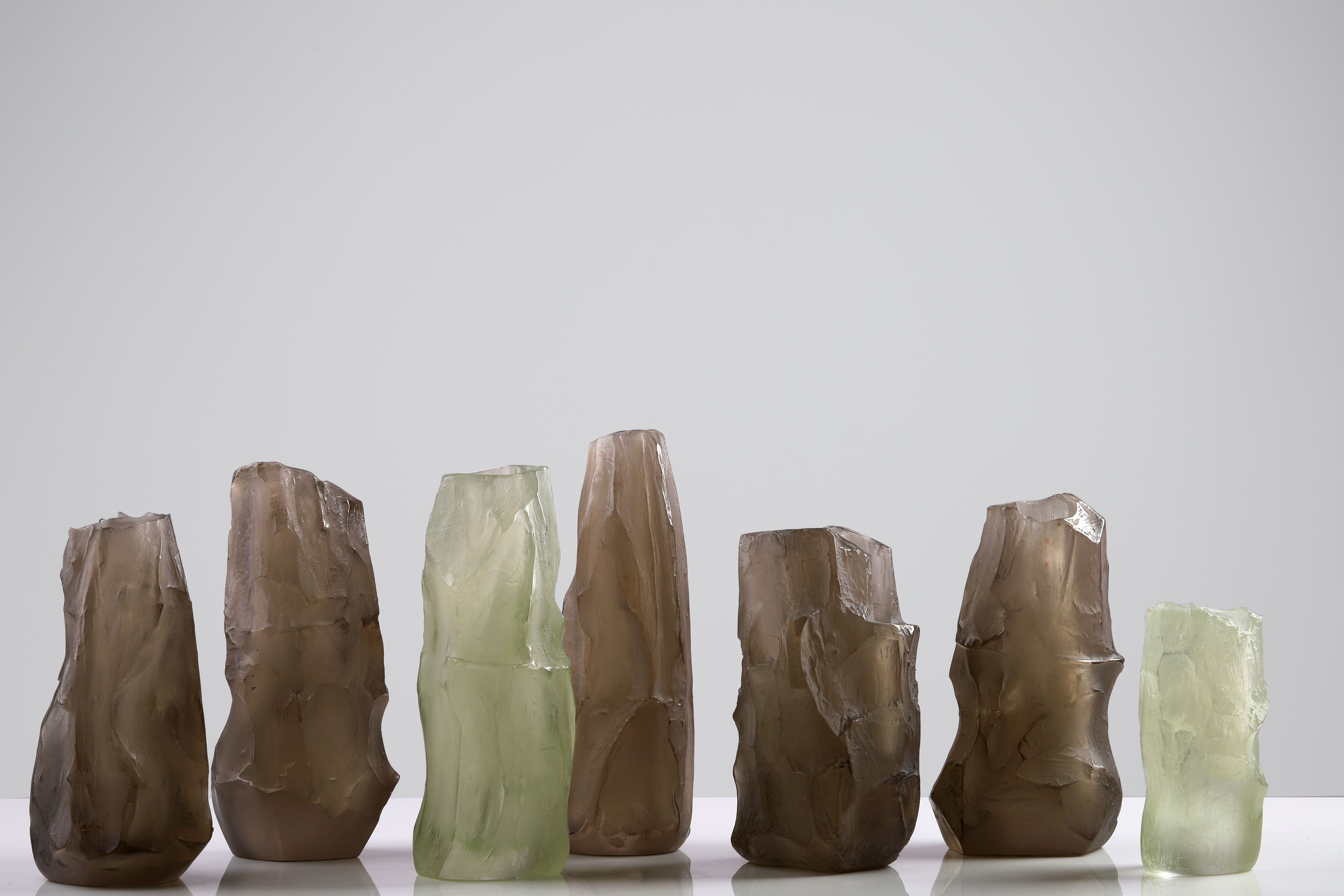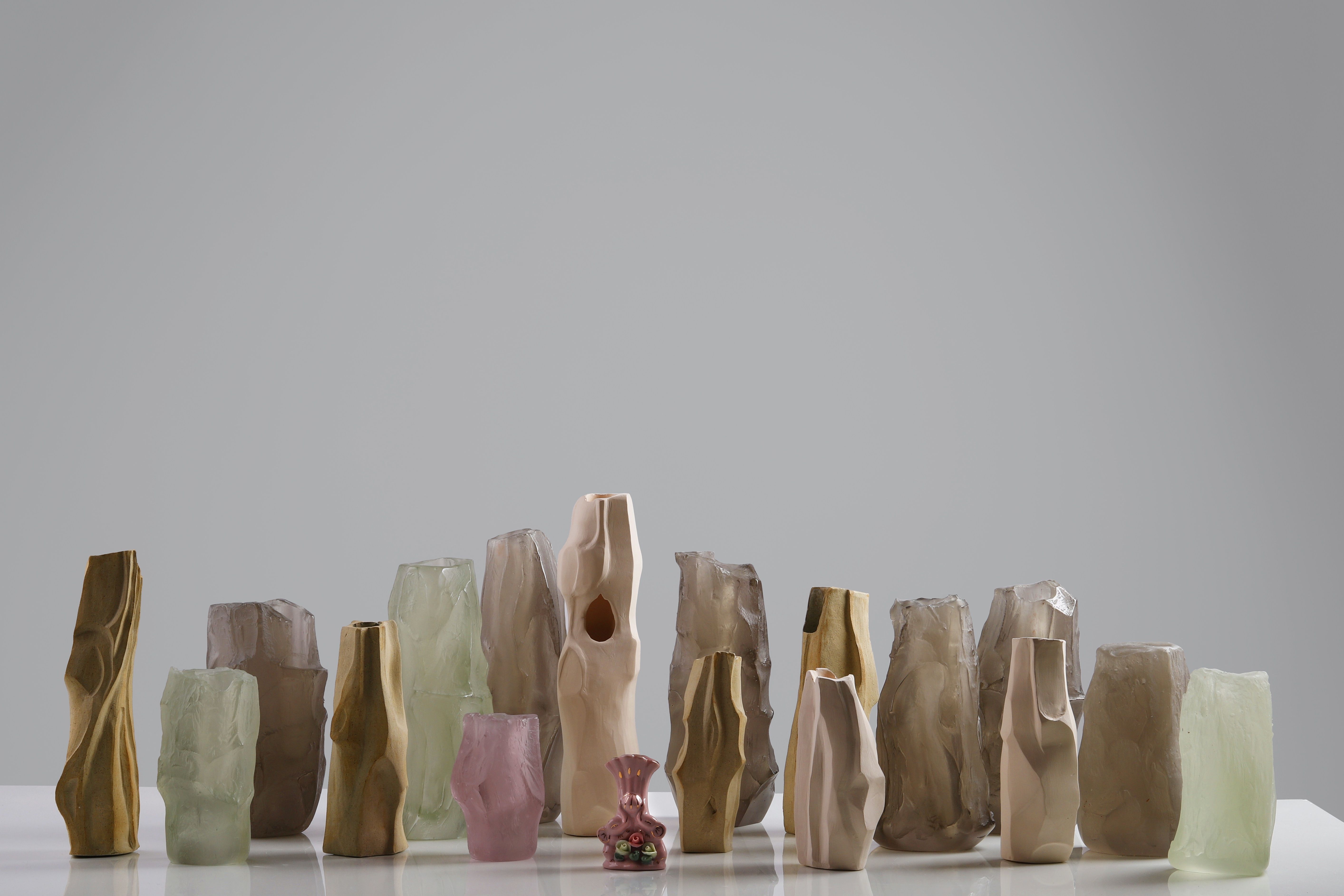 Artwork description: The bachelor’s thesis deals with the theme of the emotional relationship to gifted objects that evoke conflicting feelings — we may dislike them aesthetically, yet still have a personal attachment to them. The initial impulse was a small porcelain vase reminiscent of tourist souvenirs from Asia, whose visual appearance seems banal yet is associated with a powerful memory. The work examines how the first visual impression influences our attitude toward things we receive as gifts and how such a relationship can be redefined through an artistic process. As part of the practical section, a set of objects made of glass, ceramics, and porcelain was created using the Kurinuki technique — a traditional Japanese method of carving vessels from a single piece of material. The resulting collection offers a new perspective on the original vase and opens up broader questions about the value and meaning of personal artefacts in our lives.