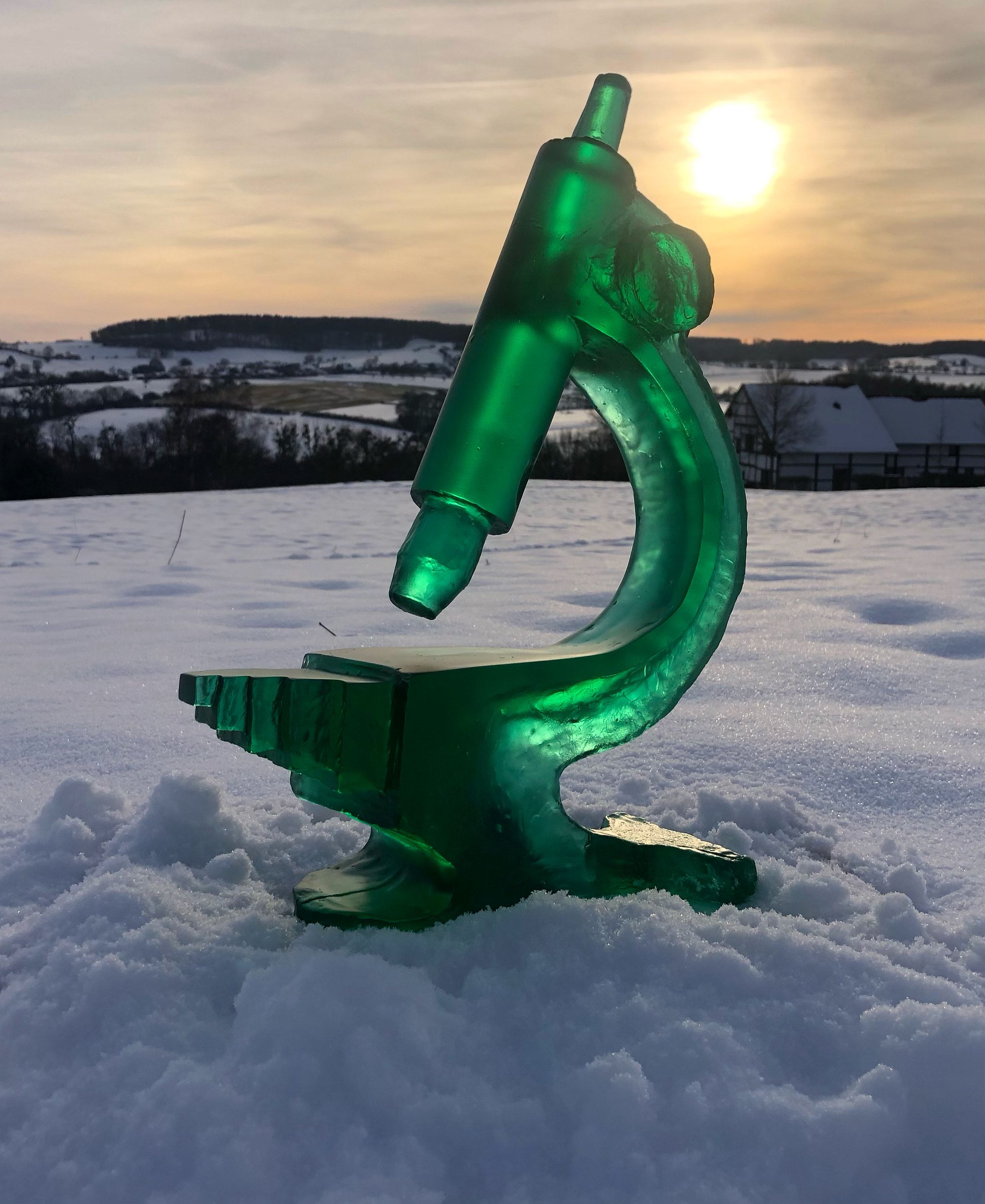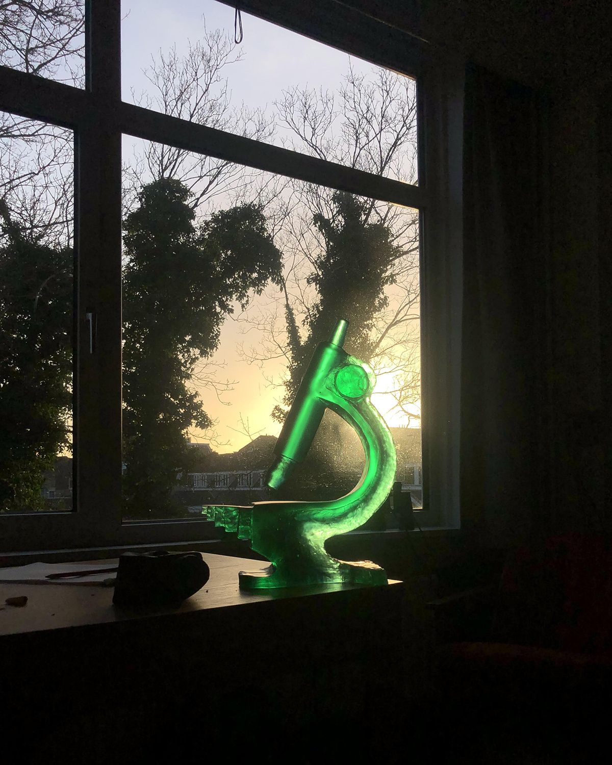 This work was designed with the artist community of my city in mind. I made a connection between a microscope and an anvil. The former symbolizes the scientific character of the city and the anvil represents makership.