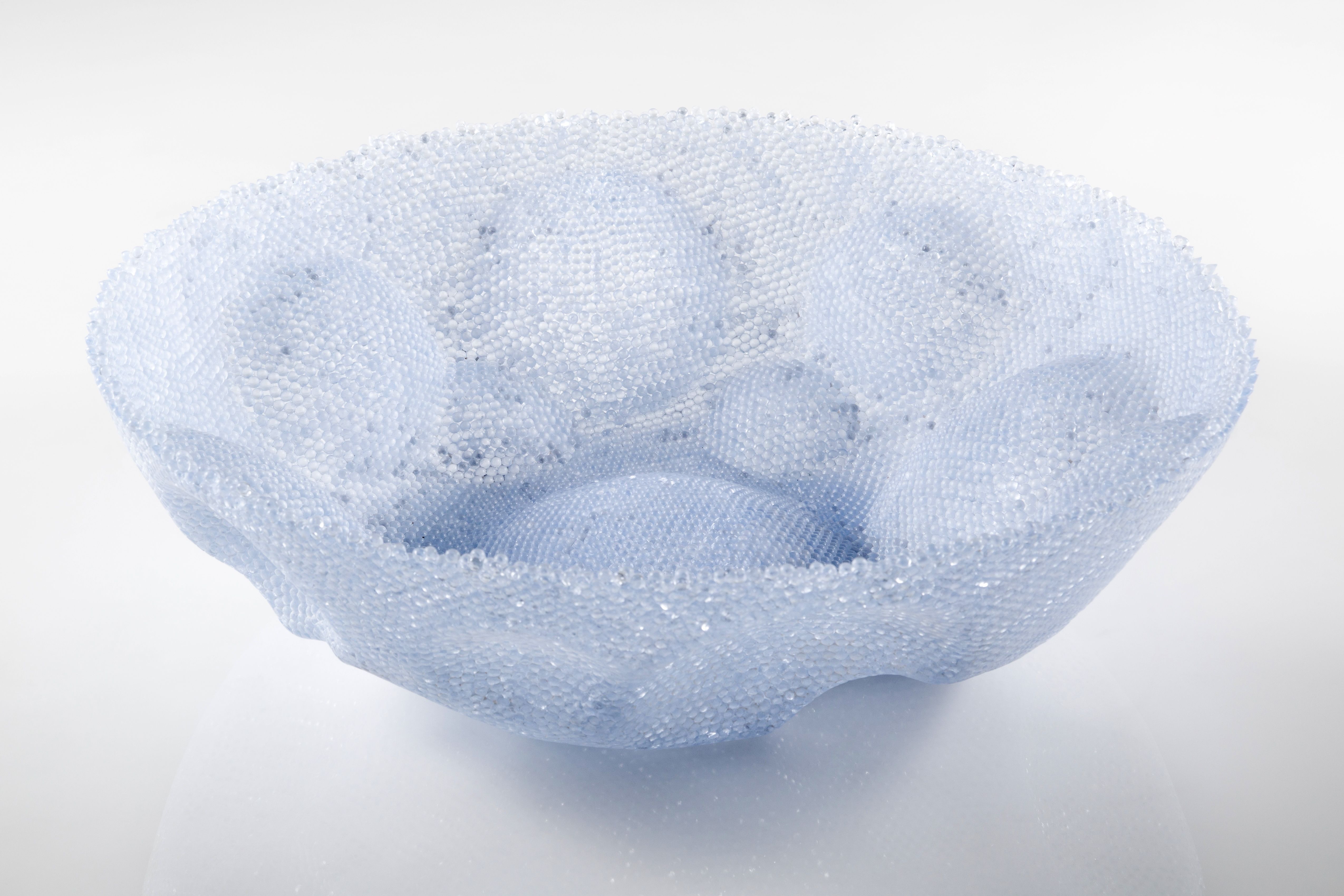 Artwork description: I present to you my graduation work entitled "Reunion". The artwork was created by a new technology for fusing glass beads I developed during two years of research at Tokyo University of the Arts. The concept is the "shape imprint". Translucent beads depict the silhouette of the original clay model, which disappeared during the creation process. In Japan, I realized that the concept of a work does not necessarily have to be defined before an artist embarks on the creation itself. A concept can also be formulated through dialogue with the material. This approach appealed to me so much that I tried it myself while creating my graduation work. The title is a metaphor for reuniting with oneself in a new environment far from home.