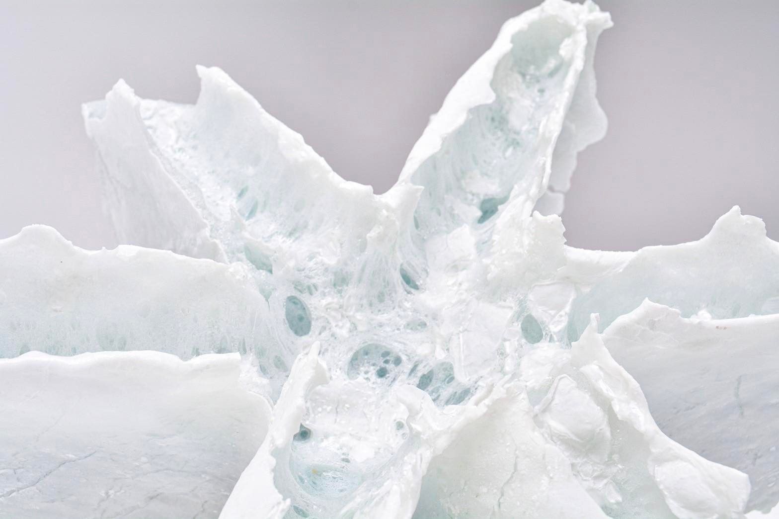 Artwork description: I create works by mixing different materials such as glass and clay.