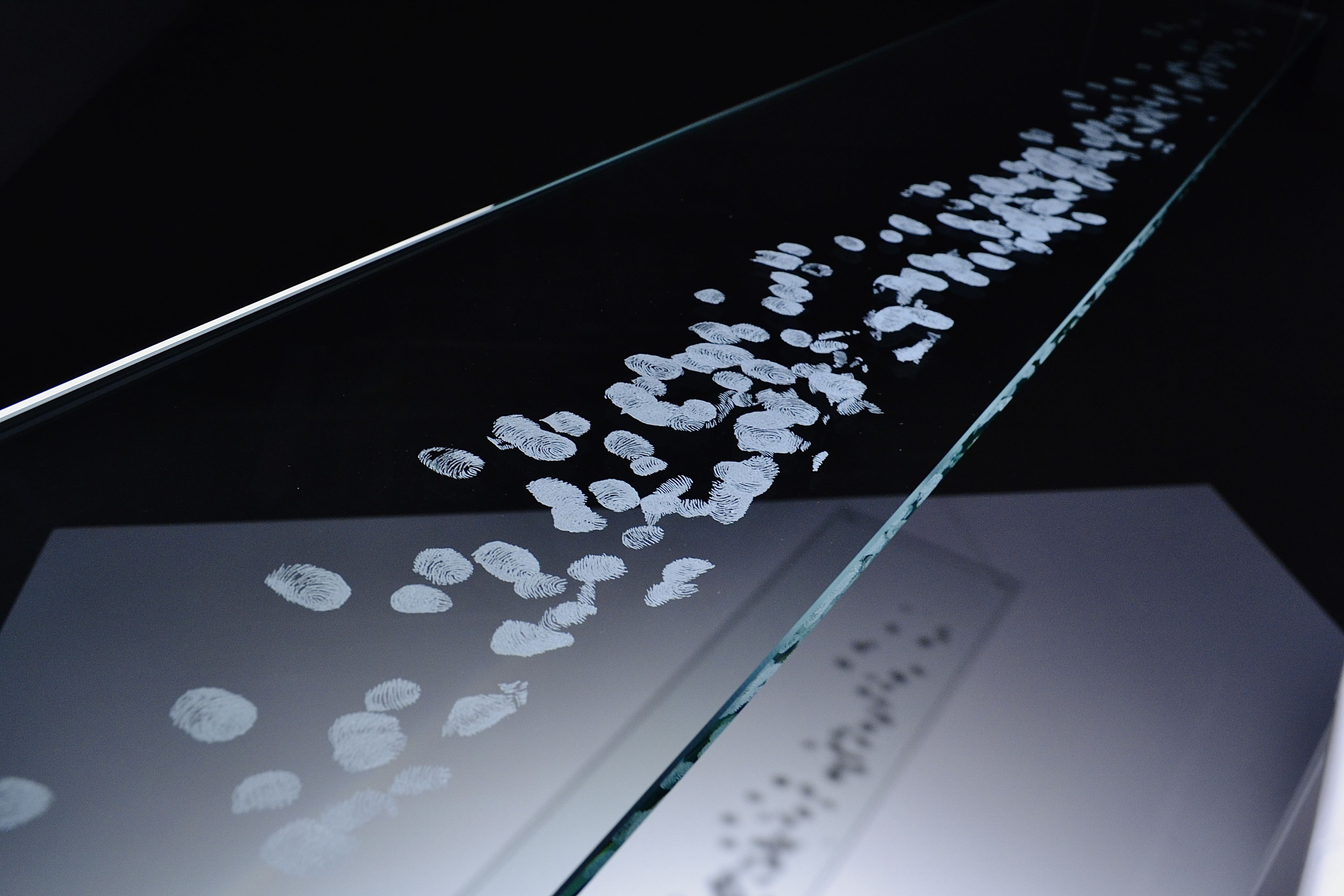 Making marks is like leaving footprints as we journey through life. They are being created in every moment of our life - every time we take a breath, every time we make a choice, every time we smile and every time we frown. It takes a long time to engrave the markings on glass, just like how it takes time for us to live a life. Memories couldn’t be erased and changed, just like we are not able to erase an engraved mark on glass. Fingerprints engraved on the glass are very detailed, sharp and clear when the shadow of them are blurry, as if every memory that we created up to date is always clear and fresh, but they become blurry and vague as time goes by and as we keep growing up.