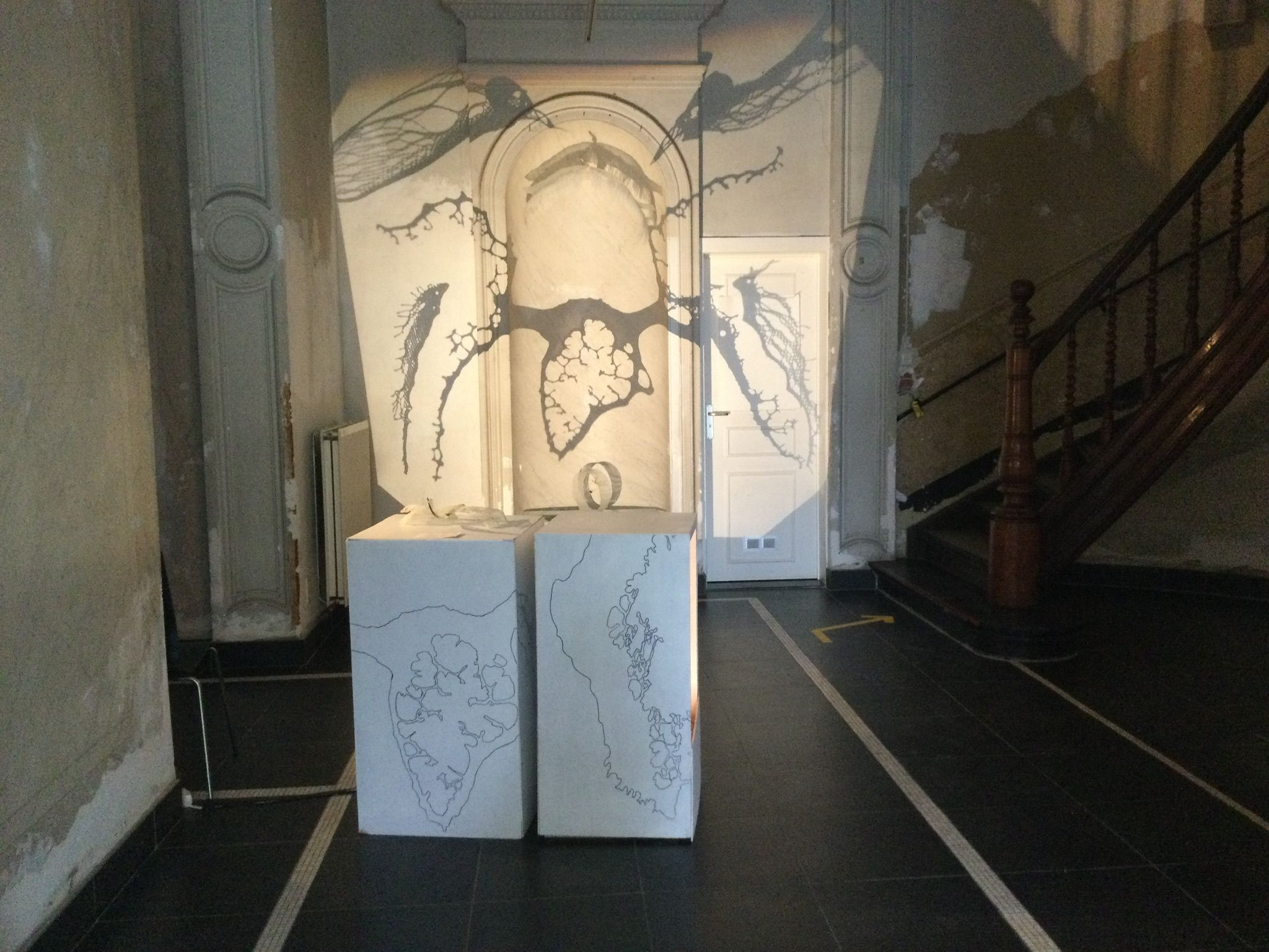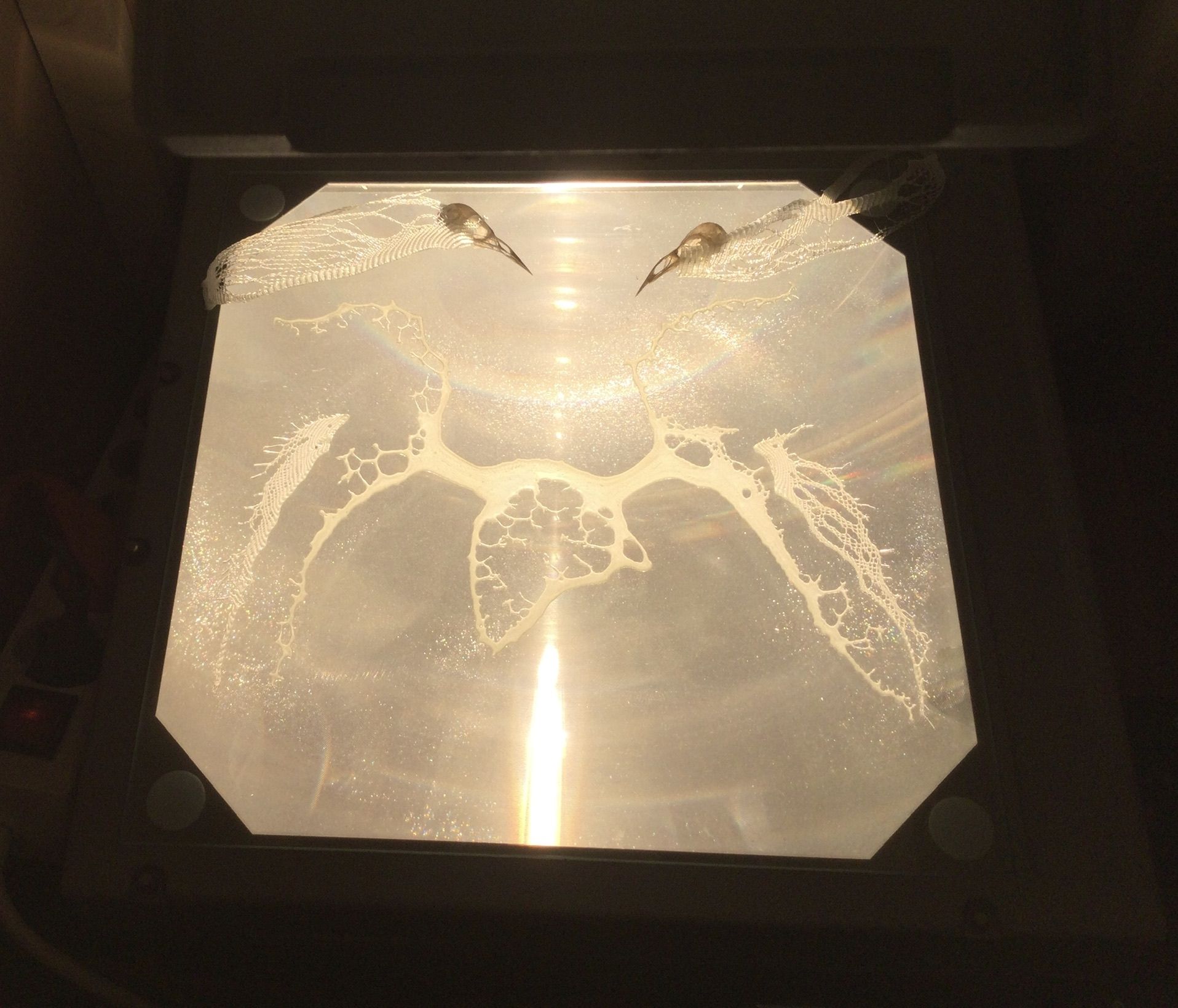 It is a projection of glas with a overheadprojector. And that in combination with real glas which hangs near the wall on which I project