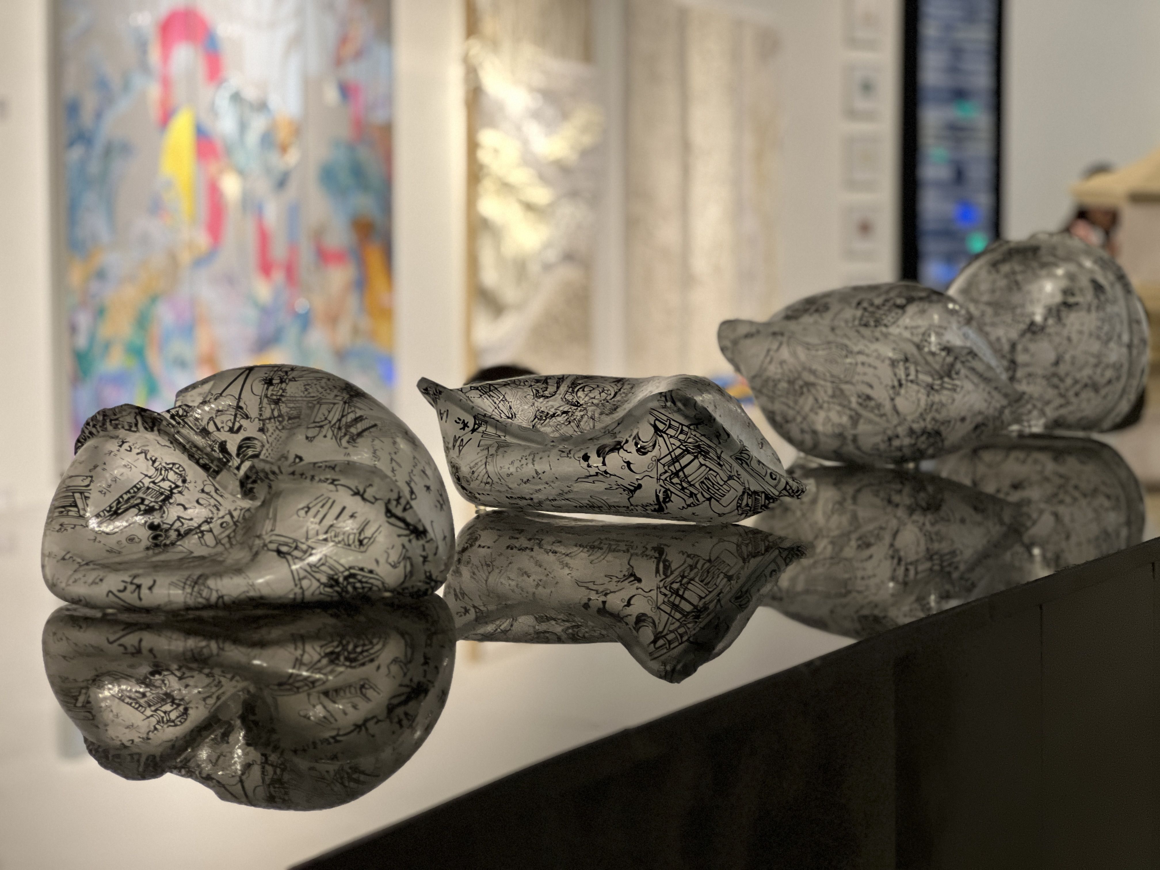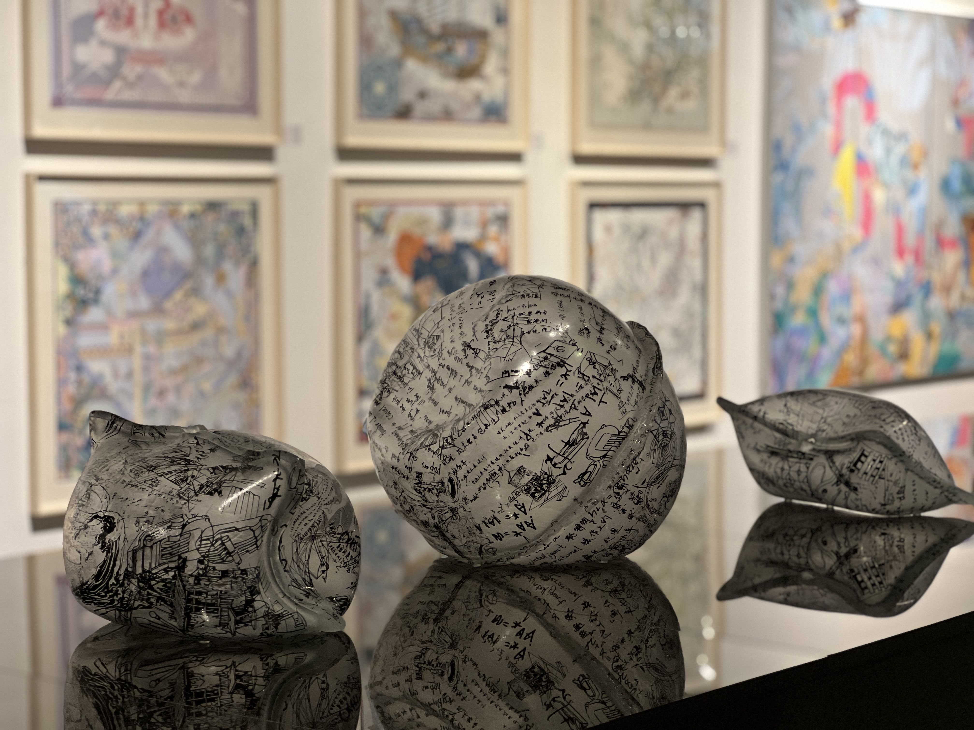 Artwork description: The molding method of the work is a combination of the traditional float glass process and the blowing process, which is an innovative glass forming process. The above pattern is the content of the scratch paper collected from the graduate students, including not only art students, but also liberal arts students and science students.