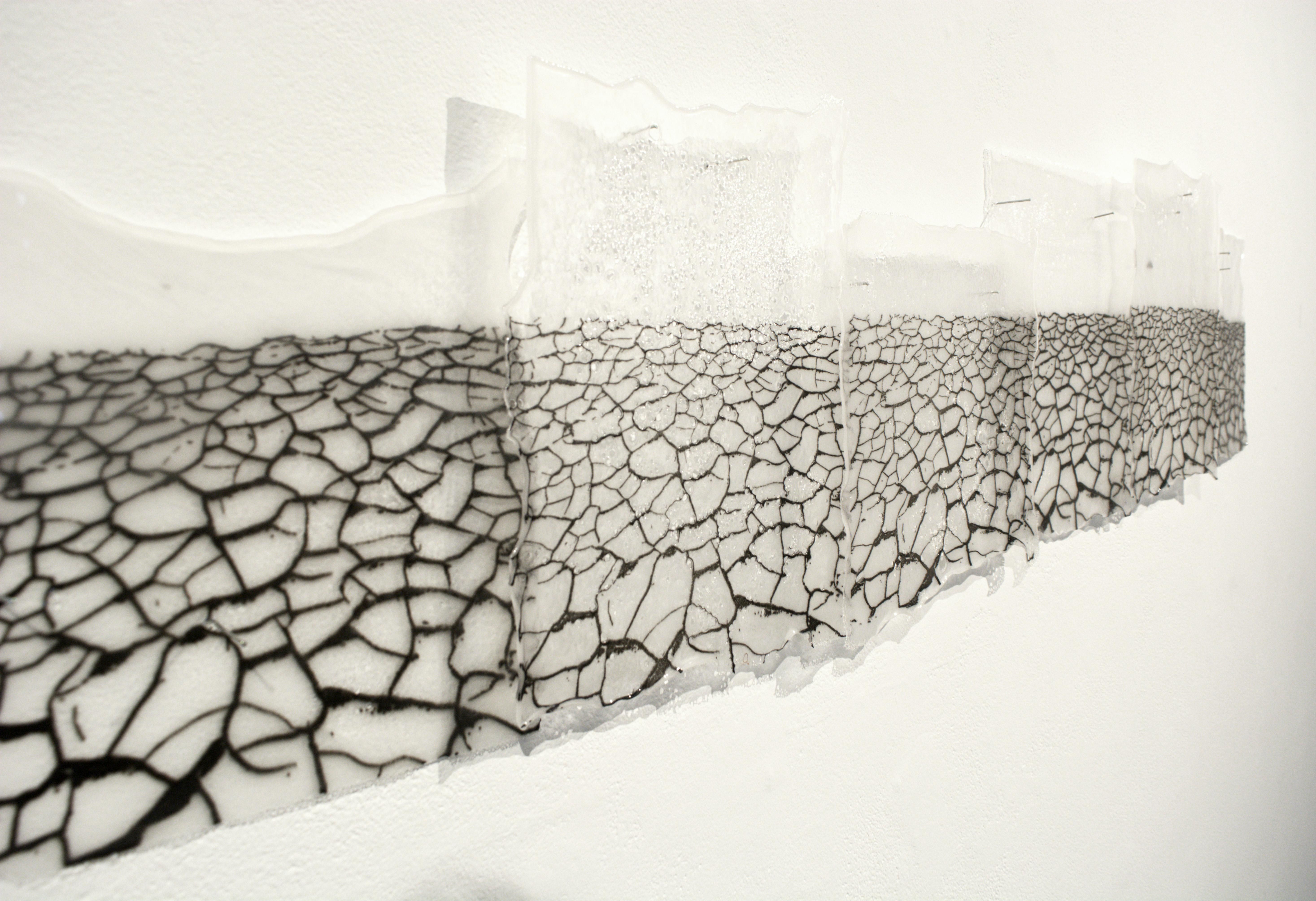 Artwork description: I grew up 'in a greenhouse' in a small village in Israel where my family used to have a mango grove and a greenhouse. It was a warm, safe, and protected childhood that enabled me to recover from the crises and traumas I went through later in life. My childhood memories are my anchors and the greatest source of inspiration. My Israeli identity, the landscapes, and the Hebrew language are very present in my work. My strongest sense of longing and belonging relates to the soil and the Israeli landscapes that are embedded within me. Currently, I am pursuing my MFA in glass at Tyler School of Art and Architecture, Temple University, Philadelphia. This relocation from Israel redefined my identity. Being dislocated from my homeland has become an increasingly dominant presence in my work. Whether it's by using the Hebrew language and writing memories or using images that are recognized as Israeli symbols, such as the Dried dessert land. The literal and physical fractures represented in the work speak to the longing for Zion that has existed throughout history and the torn land of Israel with its endless circle of violence. The pieces also represent my own personal fractures as I relate the soil to my body and my existence.