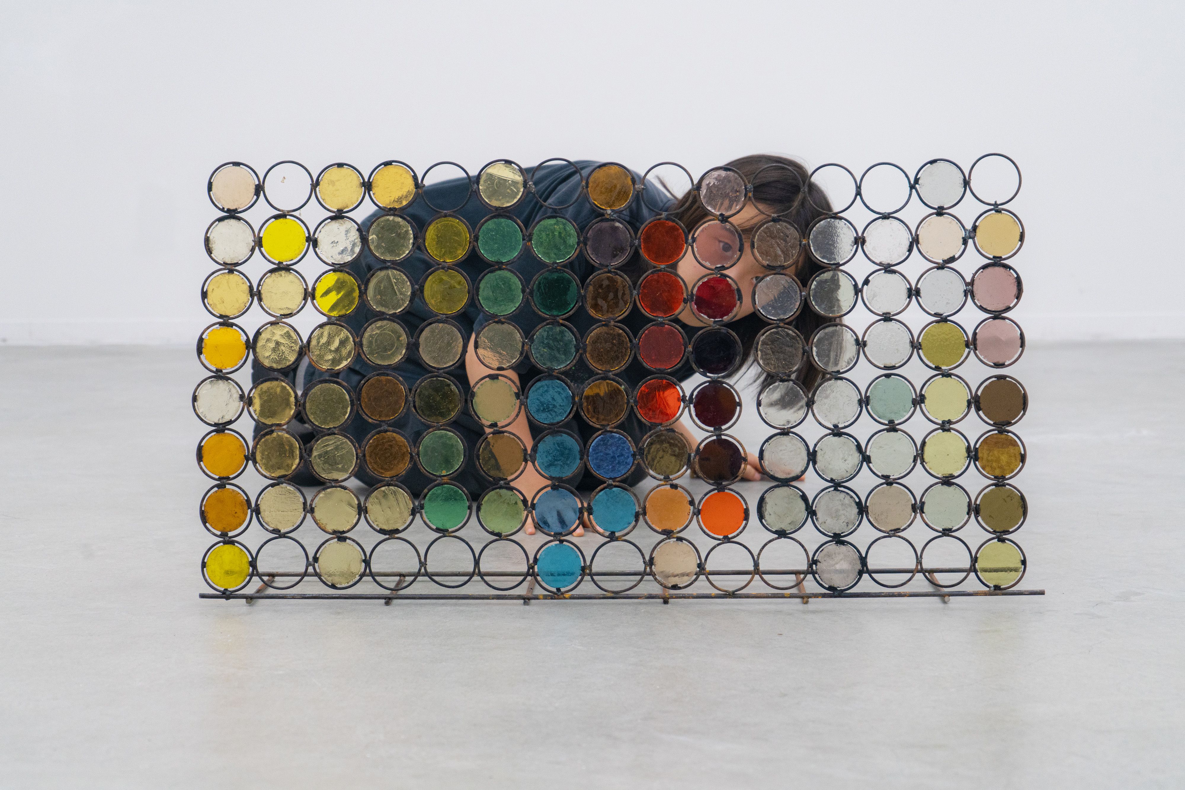 Artwork description: This installation delves into the deep connection between humans and animals, inviting viewers to experience the world through the heightened senses of animals. Focusing primarily on kiln-work techniques, it employs glass fusing methods with overlapping glass sheets to create unique colors and textures, inspired by research on how animals perceive their surroundings. Combined with fused colored glass, mirror glass, and lenses, this installation recreates the way animals see—a broader spectrum of colors, greater detail at a distance, and magnified intricacies. As participants engage with the installation, they are encouraged to move, bend, and interact with the materials, embodying the movements and perspectives of animals. By looking through the glass, viewers not only alter their visual perception but also foster a deeper understanding of the shared experiences that connect humans and animals. This installation challenges us to reconnect with the natural world and see it through the eyes of the creatures we share it with, all through the transformative medium of glass.