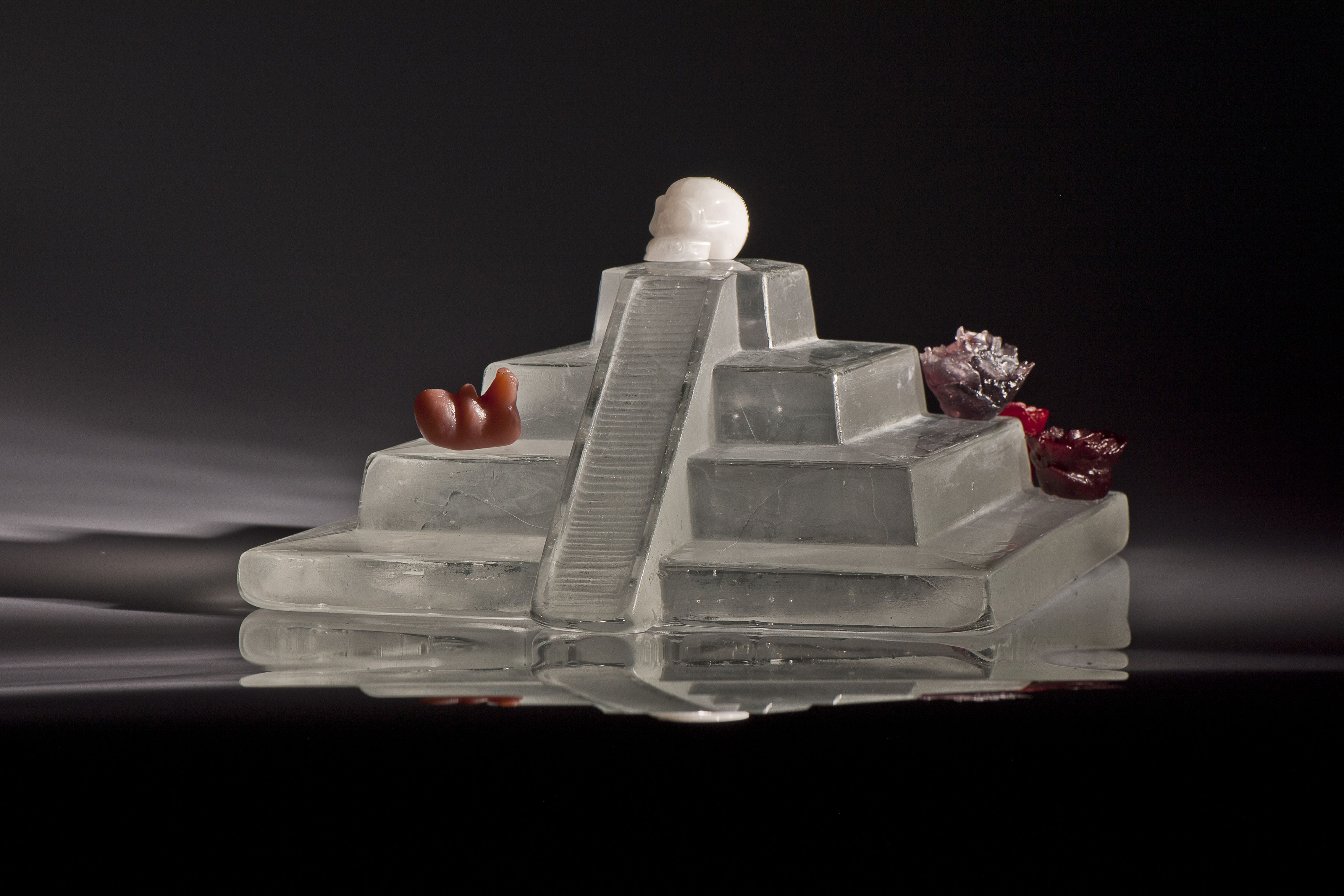 Artwork description: The sculpture, titled "Viva la Vida," is inspired by the work and life of Frida Kahlo. The title of my work refers to the artist's last painting. The work's central element, a pyramid, is a reference to the artist's roots, as she repeatedly painted Aztec pyramids, honoring the heritage of her ancestors. The flowers with slightly damaged petals on the pyramid symbolize the artist's beauty. Despite her body scarred by illness and accident, she was a beautiful person and was able to find beauty around her. This work also tells the story of Frida's suffering throughout her life. In addition to physical pain, she also experienced the loss of a pregnancy and unfulfilled dreams of motherhood. The symbol of this suffering is the embryo. The skull at the end of the composition symbolizes the end of life and its fragility. Referring to the artist's Mexican origins, the skull is a key symbol of All Saints' Day, expressing respect for the deceased and living in their memory. This composition is both a story about Frida Kahlo's life and my tribute to this Unique artist.