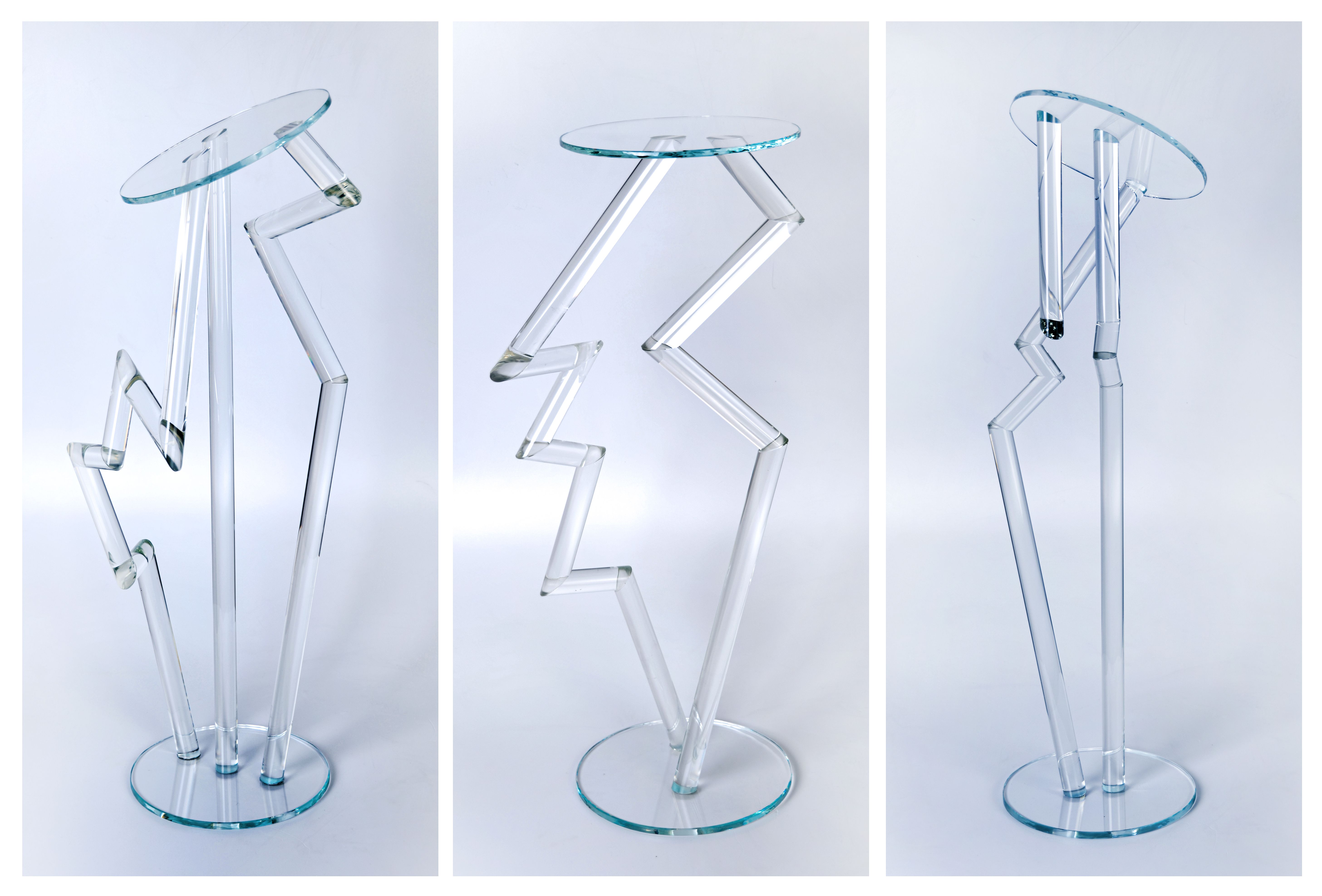 2 "The work soncists of 3 glass single tables, made out of tubes representing the differents unfluence of music. From very fragile and minor music genre to very bold movements."