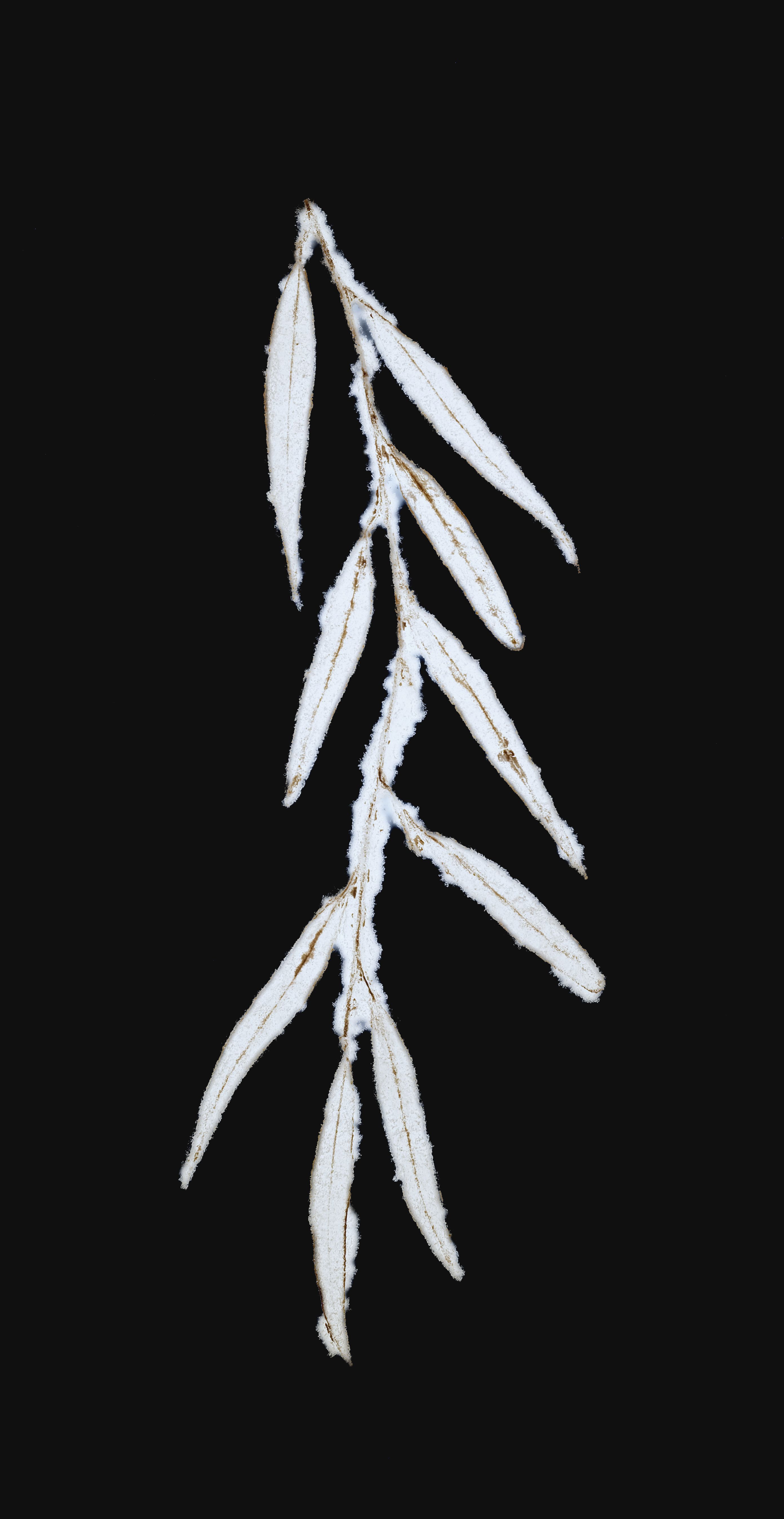 Artwork description: Anchored in a single ancient weeping willow, this work explores arboreal temporality and environmental memory. Using pâte de verre to capture the draping fragility of its branches and frottage to record the diameter and bark textures, the work creates both fragile impressions and monumental records. Together these gestures invite a sensual, embodied encounter with the willow as an ecological timekeeper. The sculpture responds to the precarity of historic urban trees while honoring this willow’s multigenerational presence. A tree of such age does not merely grow alongside us, it bears witness across centuries. This more-than-human resilience challenges linear, anthropocentric ideas of life and continuity. By suspending fragile casts of its branches, the installation becomes a fragmentary canopy: a memorial to the vanishing of urban giants, and a celebration of this willow’s endurance. The work asks us to reflect on what we inherit from nature, and what may be lost if we fail to listen to this ancient presence.