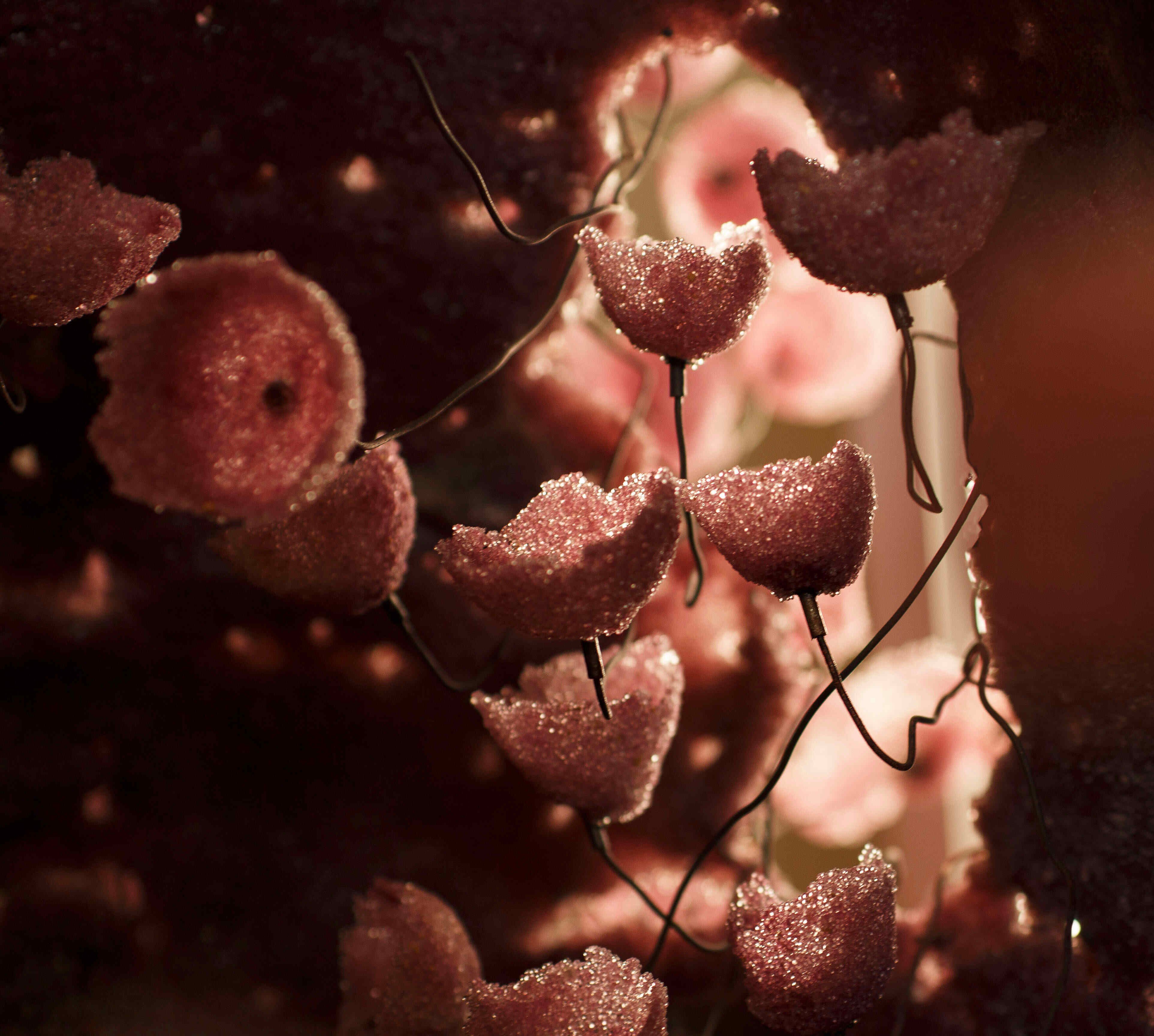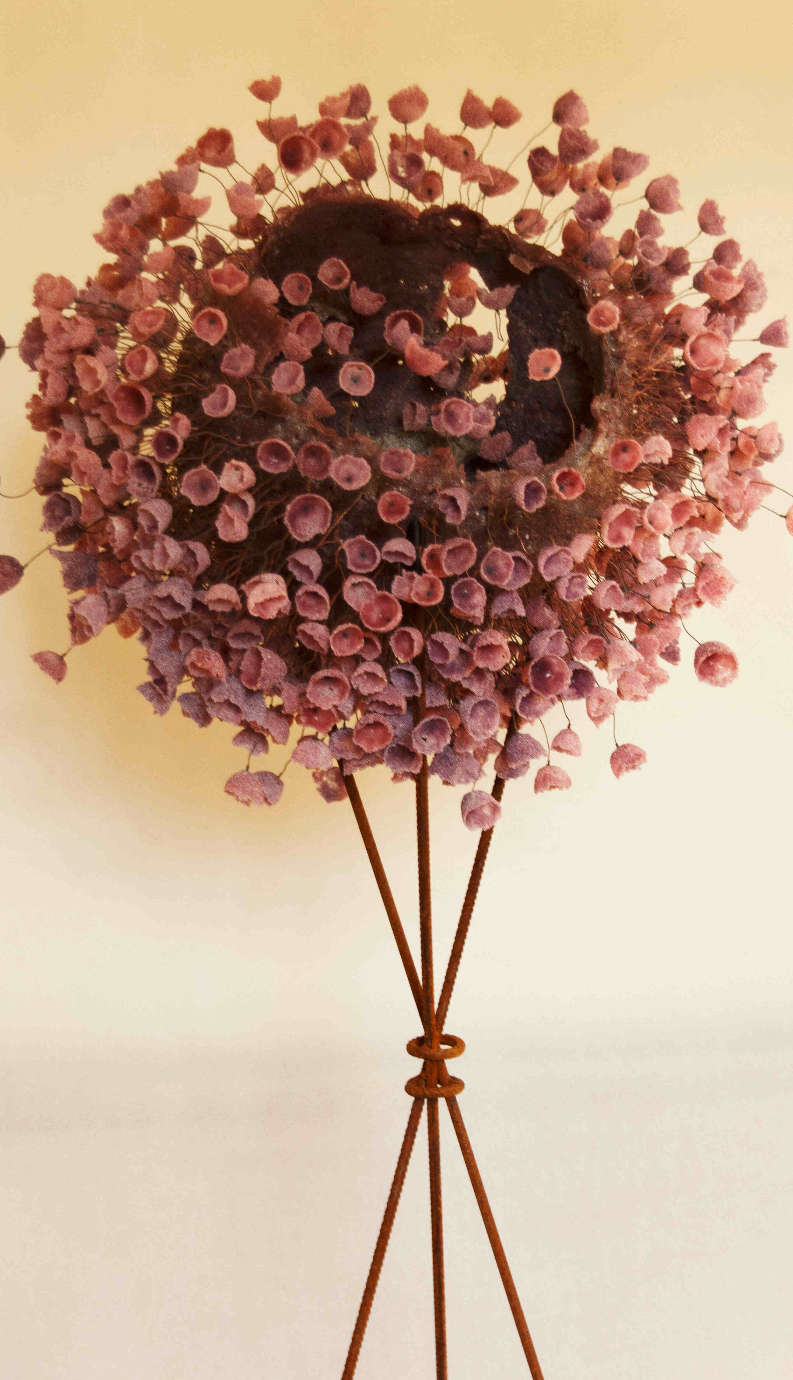 Artwork description: "Force of Nature" has to do with the fascination of whole fields full of flowers that have always remained. But those flowers are disappearing. With my work, I try to draw attention to the natural beauty of flowers and the possibilities that the earth has in them. The bulb is a symbol of the power and survival drive of nature: There are flowers in the open air on the outside and in a cave (inside) where they have made their way through the cracks of the rock to be able to bloom, to drop their seeds that will germinate into new life. The sphere representing a cave/rock is made of thick pâte de verre, while the flowers should also give a fragile impression of the same technique but be very thin. (I have to de-install and install the work myself on where it will be placed.)